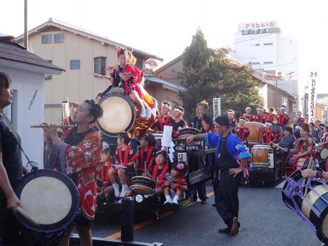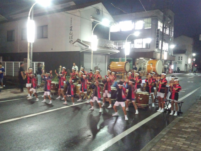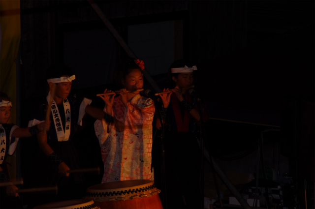 | 2012/07/29 高城まつりで感動を与える演奏をしました。 団員の高城小学校出身者(古林まおさん6年生、古林くうたくん4年生)の縁で、初めて「高城まつり」で演奏することになりました。 出演予定時間は、夕方5時30分。 今日も夕立が・・・4時20分ころからパラパラと雨が降ってきました。 まあ、童子ばやしですからそのうち上がるでしょう。 10分間、控えの渡り廊下で音出しをさせていただきました。 太鼓の音に、たくさんの人が集まってこられました。 隣りにいた保育園の保護者の方から「太鼓させたいな。」とたくさん声をかけられました。 祭りのステージイベント開始時間は、雨との調整で25分遅れましたが、打吹童子ばやしの出番には雨もすっかり上がって、思いっきり30分の演目をさせていただきました。 鼓魂→里見伝説「新・八犬伝」→MATSURI を演奏しました。 今日の、鼓魂の一番太鼓は、吉良くんと中山くんでした。 太鼓の響きにたくさんの方が集まってこられました。高城地区では初めての演奏です。 たくさんの方から、初めて見た聞いた。かっこいいなあ。凄いなあ。みんな小学生ですか。と声をかけられました。 青葉さやさん(小6年生)の伏姫の音色は、貫録がついてきました。安心して聞いていられます。 「新・八犬伝」では、曲の大切なテーマを吹きます。 ただ、メロディーを吹くのではなく。そこには、感情や情景があります。 八犬士のこと想い、乱世を憂い、妬みや呪いと戦い勇気を送ります。そして新しい平和な希望あふれる世を願い、幸せを祈ります。 「宴の章」では、皆さんとともに心を繋げて祝いの宴を楽しみます。最後には大輪の花火が打ち上げられます。 八犬士、雷鳴組も曲の意味を大切にして、演奏していきましょう。 今年は、「新・八犬伝」の演奏リクエストが多いですよ。 演奏後に、吉良リーダーに今日の演奏の総括をしてもらいました。 「今日の演奏は、みんなが気持ちを込めて頑張ったと思います。これからは、切れ味や強弱、声を出すところをもっと練習して、感動を与える演奏を目指しましょう。」 そうだね。声が出るともっと気持ちを伝えることができるね。 古林さんの縁で、初めての高城まつりでしたが、本当に賑やかな祭りでした。 今回、たくさんの方に打吹童子ばやしを披露できて良かったです。 お世話いただいた皆様ありがとうございました。 音響さんからは、しの笛の音色のこと、子ども達の演奏のこと「感動しました。」とコメントをいただきました。 |