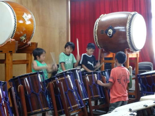 | 2012/07/04 定例練習会 団員がそろうまで、長谷寺のリズムで基本打ちをいました。 15分位やぐらのソロを打たせてもらいました。気持ちいい汗をかきました。 開会セレモニーをして、練習に入りました。 今日は、打吹童子ばやしのプロローグを「鼓魂」に変えて練習しました。 今年の夏は、打吹童子ばやし新バージョンで行きます。 新人さんには締め太鼓のソロがわからないので、ソロ部分を含めて、リズム遊びを15分くらいしました。 腕を伸ばしたり、体を曲げたり、飛び上がったり、休んだり、3連符や裏拍あり、いろんなリズムを真似してもらいました。 凄いです!!みんなついてきます。・・・本当 感心するくらい良くできました。 いよいよ、鼓魂と打吹童子ばやしの合体です。なかなかこれもいいですね。 ・・・打吹童子ばやしのプロローグはしばらくしないので忘れちゃわないでね。 5分休憩の後に、向山夢太鼓を有志で打ってみました。良い演奏ですが・・・声がなかなか出ませんねえ。プライドが邪魔しますかねえ。(笑い) 最後に、長谷寺の絵馬伝説→鼓魂・打吹童子ばやし2章までやって、続けて3章はMATSURIショートに変更して演奏しました。 みんなの気持ちが一つになってきました。頑張ったね。 吉良くんと林らいやくんの鼓魂のやぐらの掛け合いは、本当にかっこいいですね。ますます道に入ってきましたよ。 末兼くんより今日の頑張った人を発表してもらいました。「田中将太くんが一生懸命打っていたので良かったと思います。」(拍手) 副リーダーより「強弱も意識して演奏できたし、みんなが集中して練習していたので良かったと思います。」 リーダーより「リズムも意識して演奏できたし、声も出でいて良かったです。」 わっしょいコールをしてから終わりのあいさつです。 あいさつリーダーは、末兼ひろとくんでした。 中部水泳大会の練習で疲れているでしょが、リーダーも副リーダーも頑張りました。