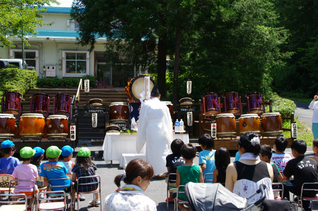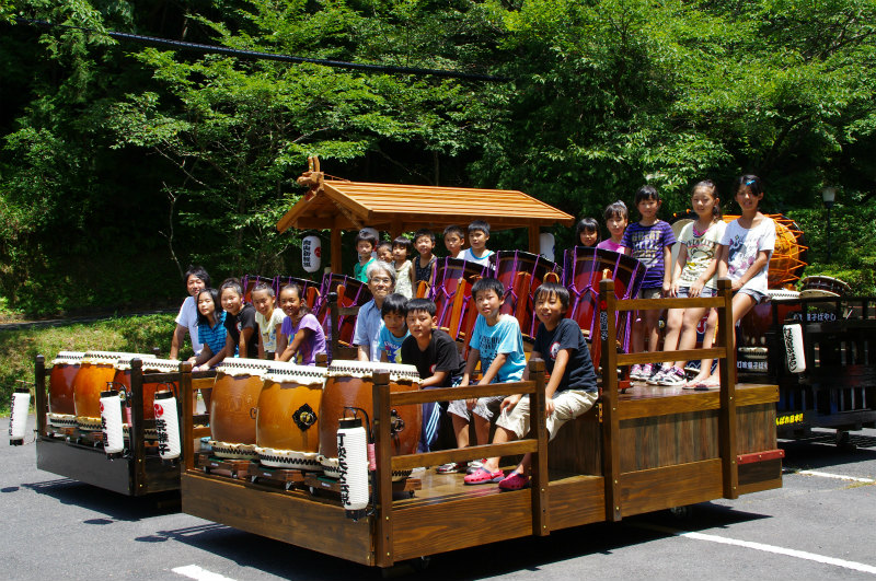 | 2012/07/28 山車の安全祈願、打吹まつり成功祈願祭をしました。 向山新鮮組と合同で、山車の安全祈願と打吹まつりの成功祈願をしました。 太鼓山車「鼓魂号」「祭囃子号」の完成に合わせて、「日野号」、「田中号」も含めて、安全祈願を八幡神社の宮司さんによる神事を行いました。 真夏日よりの中、一台ずつ丁寧に清めていただきました。 神事の後は、打吹まつりに向けての決起大会をしました。 向山新鮮組隊長の松本さんの音頭で乾杯。 その後、打吹童子ばやしの子ども達によるMATSURIの演奏をし、坂井かんな副リーダーが打吹まつりに向けての決意を述べました。 「たくさんの方に元気をあげるような演奏をしましょう。そして思いっきり祭りを楽しみましょう。」 |