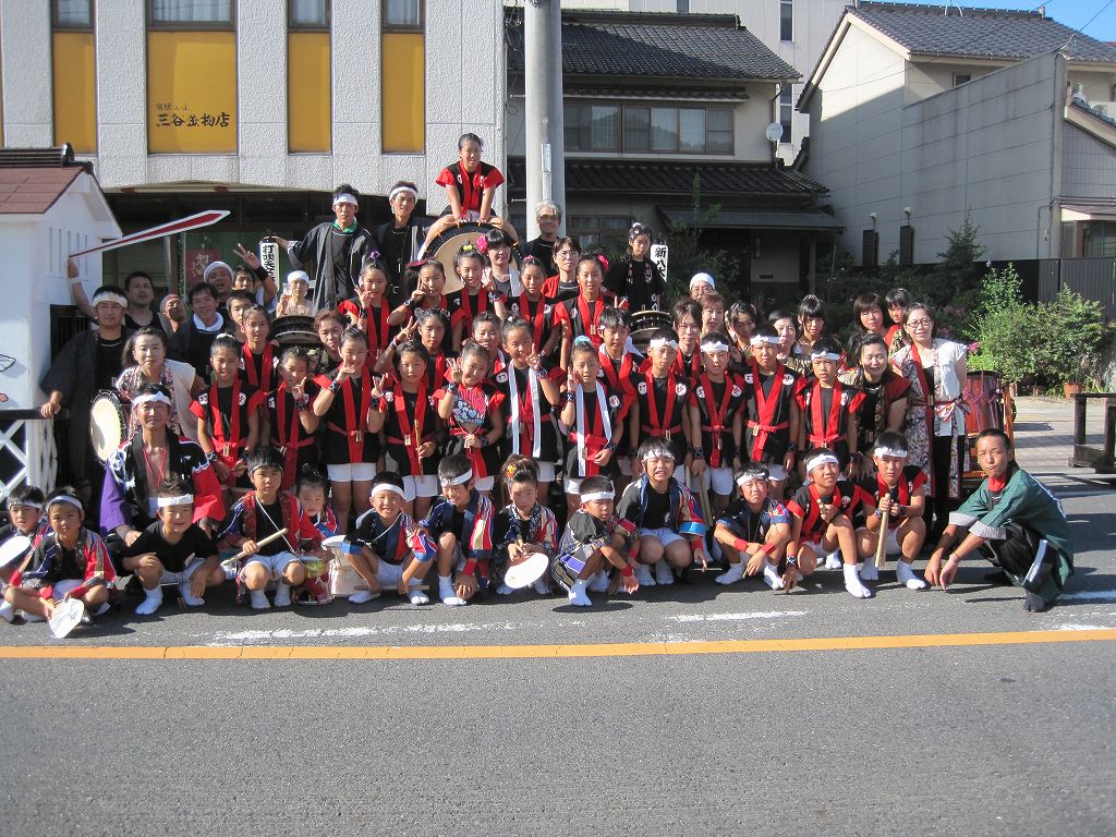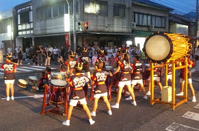| 2010/07/31 天女伝説まつりで演奏しました。 7時15分より演奏をしました。 たくさんの方に聞いていただきました。 今日は一日 MATSURI(5分)→打吹童子ばやし(15分)→宴(3分) の流れで演奏しました。 レギュラー組の集中練習会でしたね。 来週は打吹まつりです。またここで演奏します。 「宴」では自然に手拍子がわきます。今日の三公演のどの会場でもそうでしたね。 7月最後の日でしたが、打吹童子ばやしの夏はようやく半分終わったところです。 8月は、7日打吹まつり→8日とっとり伝統芸能まつり→14日しゃんしゃん祭りと続きます。 みんなが体調管理して、打吹童子ばやしの元気をみなさんに届けたいですね。 |