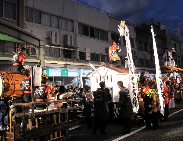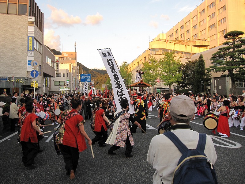 | 2009/10/11 日本のまつり 交流パレード 楽しかった!夜7時 撤収場所まで最後のワッショイパレード。 沿道のお客様から「ありがとう!」「よかったよ〜!」と拍手をいただきました。うれしかったね。 企画していたパレードテーマソングのエンディングもバッチリ決まったね。 最後は、日本のまつり 若桜街道で楽しませていただいたことに感謝してありがとうございましたをみんなで言いました。 みんなの 顔・声 すがすがしかったね。沿道のお客様から拍手をいただきました。 これが祭りだね。 |
