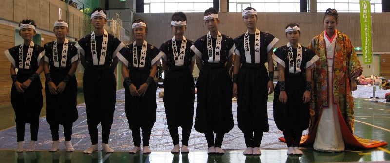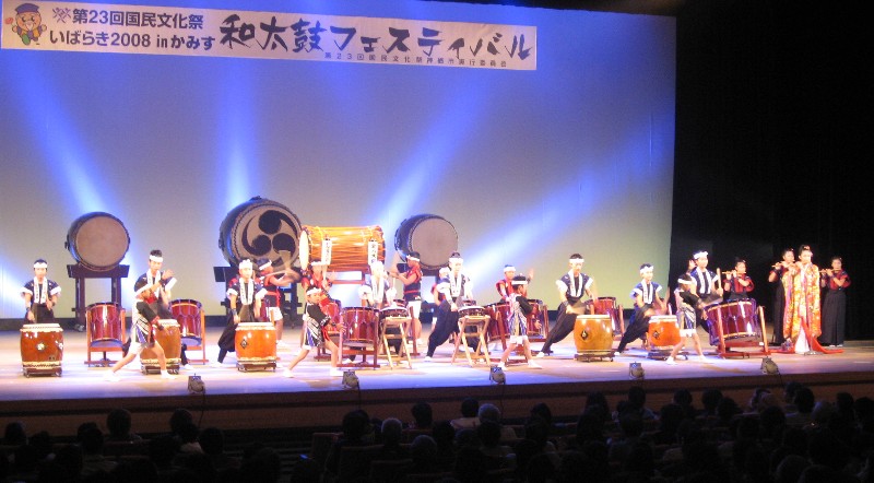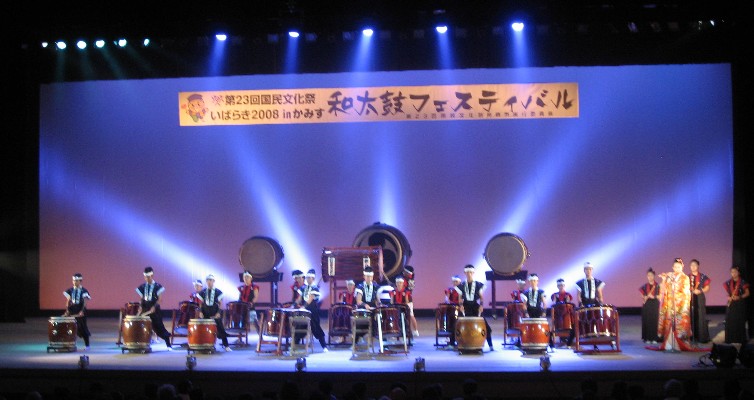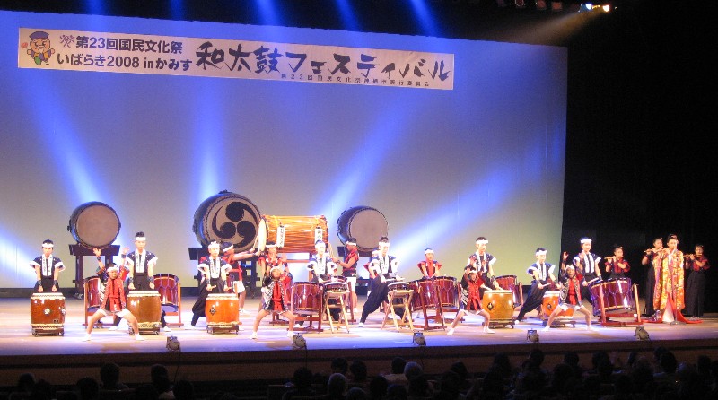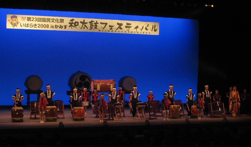 | 2008/11/9 国民文化祭いばらき「和太鼓フェスティバル」 神栖市文化センター 本番 素晴らしい演奏にみんな大満足でした。 国民文化祭いばらき2008 「和太鼓フェスティバル」 茨城県神栖市 神栖市文化センター 11月9日2時30分より 本番演奏。 みんなの気持ちもひとつになって、本番は素晴らしい演奏をしまし。 演奏したみんなは、やり遂げた気持ちで大満足です。笑顔があふれました。 お客様もフェスティバル運営スタッフも保護者も、大満足でした。 「新・八犬伝 〜宴〜」では、会場の手拍子も一段と大きくなって、みんなが感動をもらいました。 「きをつけ! 礼!」「ありがとうございました。」 会場から鳴り止まない大きな拍手をいただきました。 八犬士の力強い演奏に、会場のみなさんは大人か学生かと思っておられたようで・・・ 会場前で記念撮影してるところにお客様が出てこられて、「えっ! こんなに小さかったんだ。」「素晴らしい演奏でしたよ。」とお褒めの言葉をいただいて、 子ども達は、またやり遂げた充実した笑顔が止まりませんでした。 本当に、子ども達は良く頑張りました。かっこよかったよ! 全国レベルの和太鼓チームが集まっての「和太鼓フェスティバル」 打吹童子ばやしの子ども達の演奏は全然見劣りしませんでしたよ。 子ども連は、打吹童子ばやしだけでした。みんな、高校生以上のチームで、短大、大人のチームの中での演奏でした。 子ども達は、いっぱい刺激を受けて、また大きく成長しました。 打吹童子ばやしの遠征に関わっていただいた保護者のみなさまお疲れ様でした。また、みんなの連携が深まったと思います。 また、遠征したいですね。 今回、伏姫の衣装を協力していただいた 倉吉市の「とさき貸衣装店」の戸崎社長様 ありがとうございました。素晴らしい衣装にお客様もスタッフも大満足でした。本当にありがとうございました。 今回の遠征を支援していただいた 鳥取県文化観光局の皆様ありがとうございました。子ども達は、壮行会での決意の言葉通り、素晴らしい演奏をしました。 倉吉市の皆様ありがとうございました。 快く子ども達を送り出していただいた学校の先生方ありがとうございました。 和太鼓フェスティバルのスタッフのみなさまありがとうございました。 ご支援いただいたたくさんの方に感謝します。 また、県外遠征をしたいです。 http://www12.ocn.ne.jp/~m-hoi/kokubun2008.pdf http://www12.ocn.ne.jp/~m-hoi/kokubun20081109.pdf |