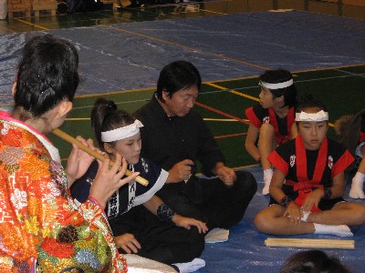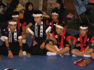 | 2008/12/03 ただ今 3月の「子ども太鼓のつどい」にむけて練習中 今年度の大きな目標であった国民文化祭を終えて、今は基本練習と打吹童子ばやし「天女と童子」を中心に練習をしています。