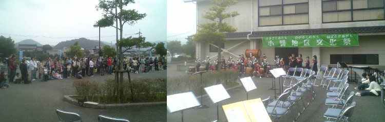 | 2008年11月3日 国文祭遠征組最終実践練習 小鴨地区文化祭会場とパープルタウンで演奏会をしました。たくさんの方にご来場いただきありがとうございました。 @小鴨地区文化祭2日目オープニングで演奏させていただきました。 Aパープルタウン中央広場で2時と B3時に演奏させていただきました。 たくさんの方にご来場いただき、子ども達も緊張の演奏をしました。 @Aの出来ばえを反省して、Bでは、合格点の演奏ができました。目をつぶって聞きました。素晴らしい演奏に涙があふれました。 2006年に発表以来、本当にたくさん演奏してきました。 天女音楽祭後に、国文祭用の譜面7ページ追加。たくさん練習しました。 でも、お客様の前での演奏は、今日が初めてでした。 子ども達の演奏は、2006年から比べると本当にたくましく成長しました。 1年生で初舞台を踏んだ子ども達も今は3年生でレギュラーです。 身体も大きくなりました。感謝の心も育ちました。 後輩への優しさも育ちました。 2006年 記念すべき大舞台での「新・八犬伝」の発表。 2007年 館山市「南総里見まつり」での演奏。 2008年7月 明石市雲晴寺での演奏。 そして、2008年11月9日 国民文化祭いばらき「和太鼓フェスティバル」で鳥取県代表として演奏します。 子ども達に惜しみない声援と拍手を送りたいと思います。 本日の演奏の場を快く提供してくださった 小鴨地区公民館の皆様、パープルタウンの皆様、わざわざ足を運んでいただいたたくさんのみなさま ありがとうございました。 国文祭では素晴らしい演奏をしてきます。 本当にみんな大きくなりました。 |