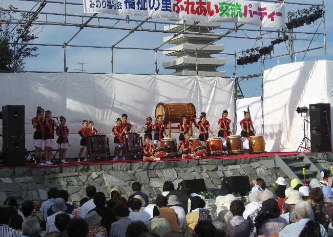 | 2008/08/17 福祉の里ふれあい交流パーティー 8月17日(日)福祉の里ふれあい交流パーティー PM5:00 オープニングで打吹童子ばやし「天女と童子の物語」2章・3章を演奏しました。 PM7:40 花月みどりさん、千昌夫さんのステージの前に、里見伝説「新・八犬伝」を演奏しました。 |