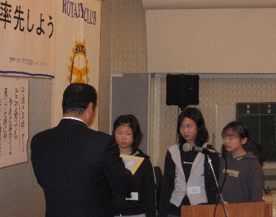 | 2007/03/15 倉吉東ロータリークラブより表彰されました。 打吹童子ばやしの活動が、小中学生で社会奉仕する青少年団体として、 倉吉東ロータリークラブの例会に於いて表彰されました。 |