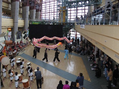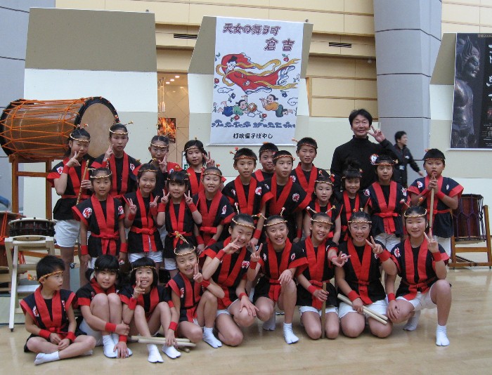 | 2006/11/18 鳥取県中部地区青少年郷土芸能フェスティバル 打吹童子ばやしのメンバーは小学1年生から6年生 たくさんの青少年郷土芸能の仲間とアトリウムライブを楽しみました。 打吹童子ばやしのメンバーは手拍子をもらってのりのりの演奏をしました。 最後は、出演者全員で鼓童KODOの「彩」で盛り上がりました。 |