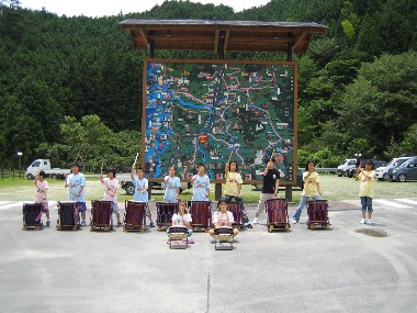 | 2006年7月26日、27日 合宿をしました。 勤労青少年ホーム(いつもの練習会場)で、7月26日朝9時〜夜7時まで、太鼓の練習。宿舎は、倉吉の石井旅館。 夜のお楽しみに、打吹童子ばやし事務局の谷口ともこさんに、夜話「日本のお化け話」をしていただきました。 27日朝6時30分より、倉吉市陸上競技場に行き、体操。 そして、恒例の男子対女子のリレー対決をしました。 7時30分に朝ご飯を食べて、 また、9時〜夜7時まで太鼓の練習。 みんなが、手にまめをつくりながら頑張りました。 保護者の皆さんから、アイスクリーム、お菓子、すいかなどの差し入れを頂きました。ありがとうございました。 最後に、お迎えの時間を使って、練習の成果を発表しました。 本当に、力強く、一回りも二回りも大きくなりました。 打吹童子ばやしの団員の結束も深まりました。 合宿を終えて、だいきくんと、たかひろくんが、今度の「打吹天女伝説祭」でデビューします。 合宿、楽しかったね。お疲れ様でした。