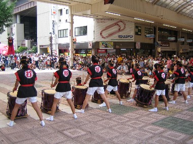 | 2006年8月5日(土) 打吹まつり初日 第30回打吹まつり オープニングセレモニー 倉吉パークスクエアからWASSO特設ステージまで移動 移動しながら、ストリートパフォーマンス 祭りを盛り上げました。
