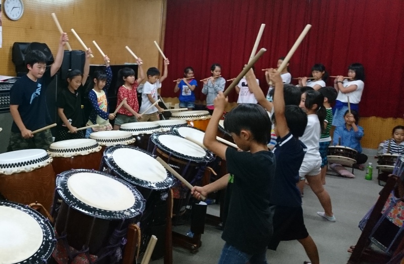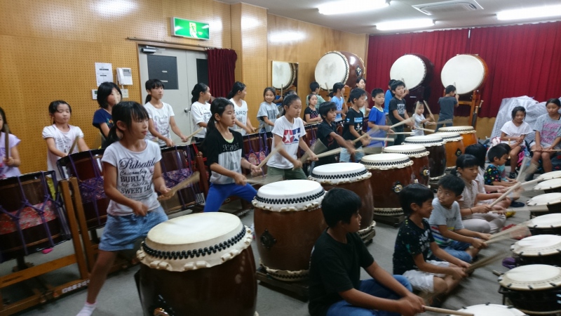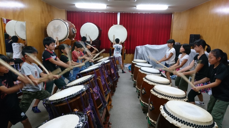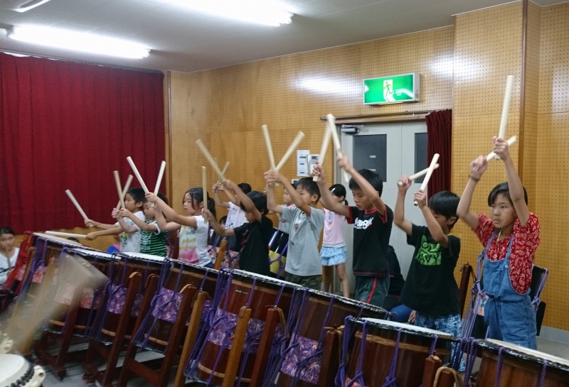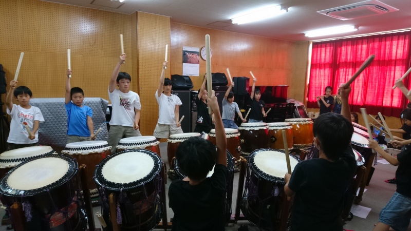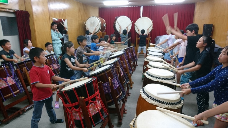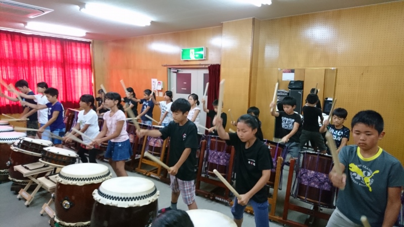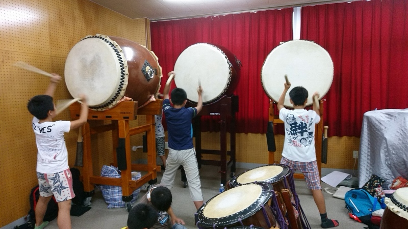 | 2017/07/1 特別練習会 2017年7月1日(土)午後1時から5時 打吹童子ばやし7月の特別練習会をしました。 「打吹童子ばやし」「鼓魂組曲2017」「里見伝説 新・八犬伝」を練習しました。 7月の八犬士が決まりました。 打吹童子ばやしレギュラーテストをしました。桶胴太鼓のかえでちゃん(2年生)、ひなちゃん(2年生)が合格しました。サポーターは締め太鼓はあやかさんとあいこさん、宮太鼓はゆづきさんとりこさん、やぐらはこうきくんとはやとくんがつとめました。合格点は90点☆まだまだこれからですが将来が楽しみです。お家からもたくさん練習したんでしょう。みんなが見つめる中テストは一人ずつです。そうとうなプレッシャーだったと思います。二人とも堂々とした演奏でした。さらに超レギュラーを目指して頑張ってくれると思います。 |