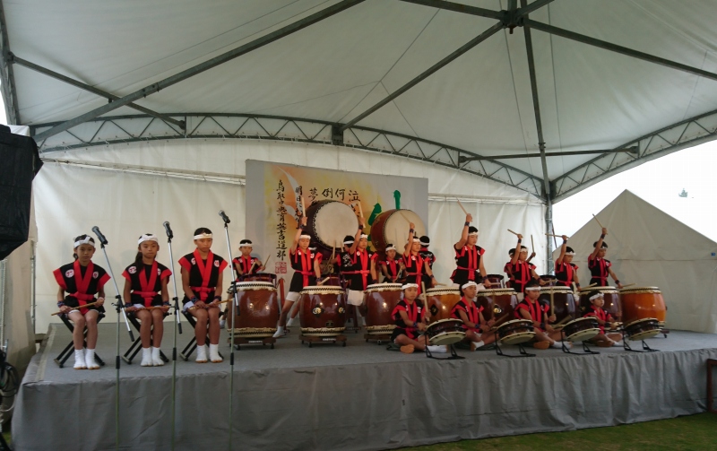 | 2017/06/25 とっとり中部発「食のみやこフェスティバル」 とっとり中部発「食のみやこフェスティバル」 2017年6月25日(日) 本番では、「KURAYOSHI〜序章〜」「MATSURI」「遥かなるふるさと」「打吹童子ばやし」「日本のまつり」 25分の構成で演奏をさせていただきました。たくさんの方に聞いていただきました。ほんとうにありがとうございます。これから夏に向けて忙しくなります。 本番30分前にセッティングができたので、リハーサルと練習を兼ねて「鼓魂組曲」を演奏させていただきました。 |