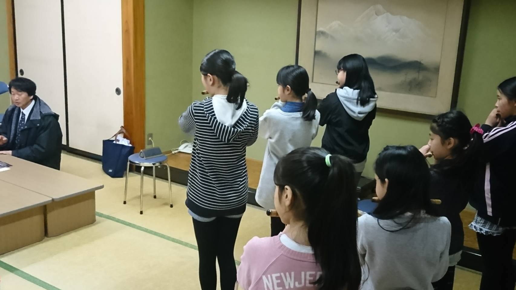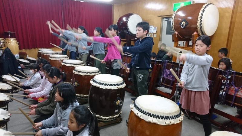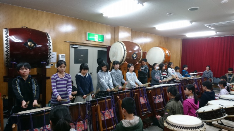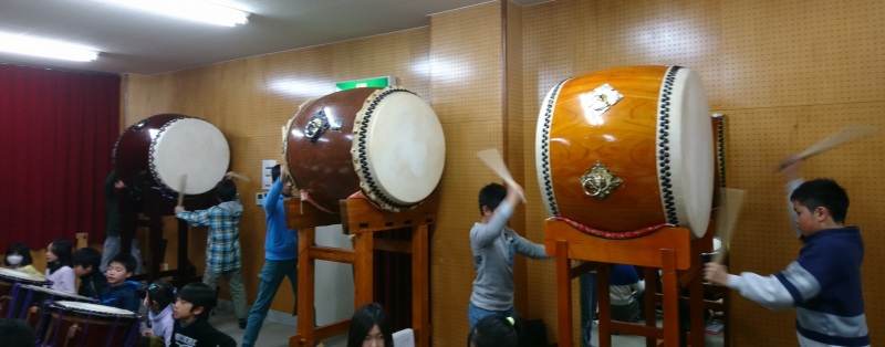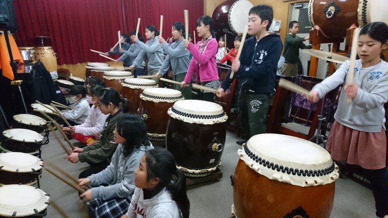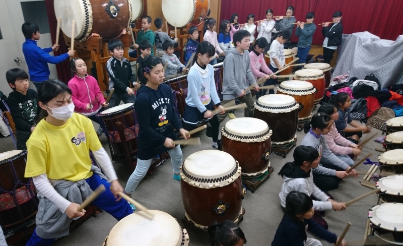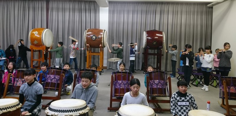 | 2017/02/26 特別練習会 2017年2月26日(日)午後1時から5時 演奏会に向けての特別練習会 倉吉孫娘の1才のお誕生のお祝いの行事を終え、初節句の宴を中座して打吹童子ばやしの特別練習会に向う。着いたら2時50分。とりあえず1時からの練習は保護者の皆さんが関わってくれて一通りオープニングから演奏をしてくれていました。 新・八犬伝の演奏チェックをして休憩。3時30分から演奏会のプログラムに沿って立ち位置、演奏きっかけ、演奏終わりからの動作の確認と舞台転換の説明をしました。 音の切れ、粒の音の響きになってきました。あと2週間を切りました。なんとかあと2回の特別練習で演奏会全体の完成形が見れそうです。良くここまで頑張りましたね。あとは、体調管理と繰り返し練習あるのみです。  |