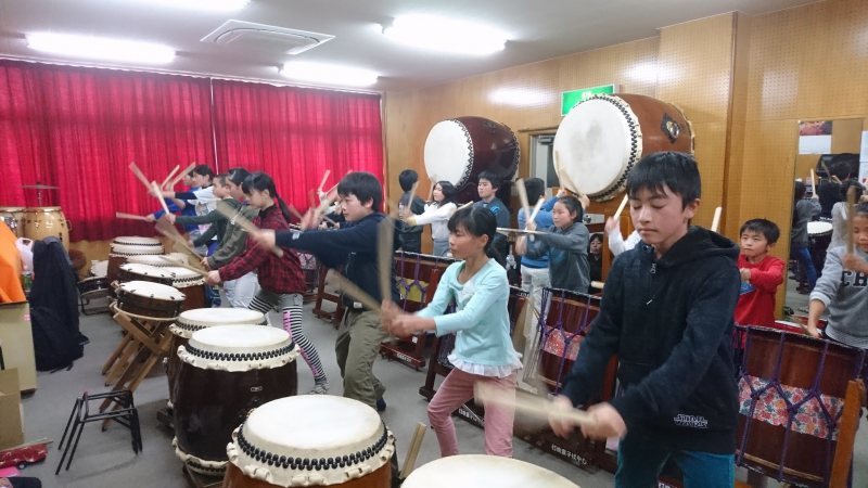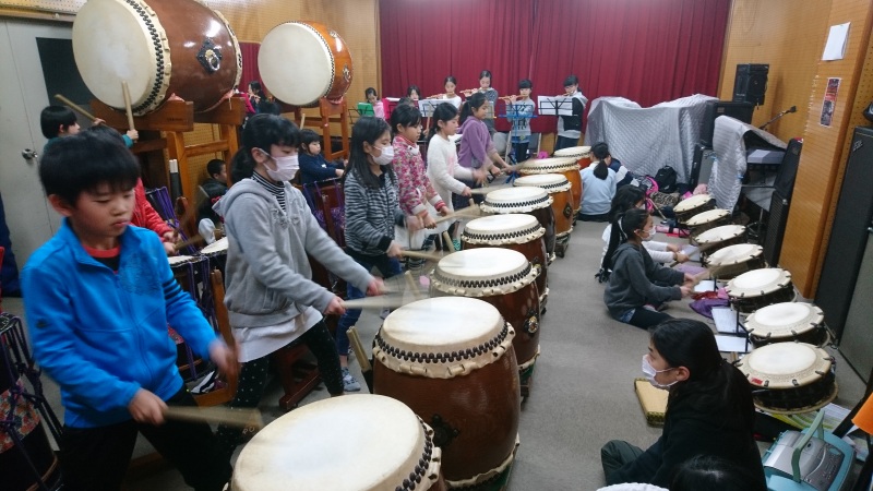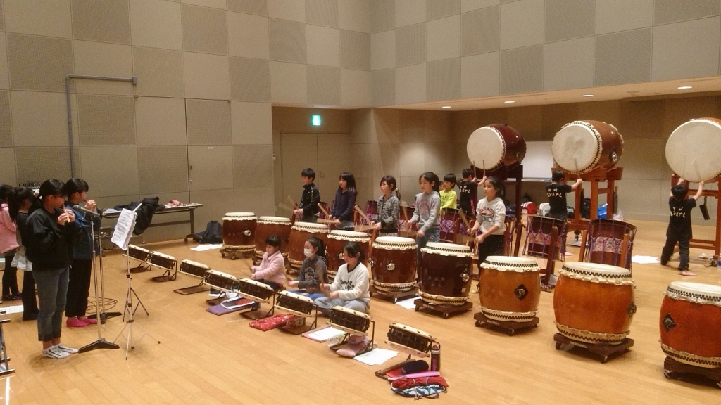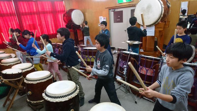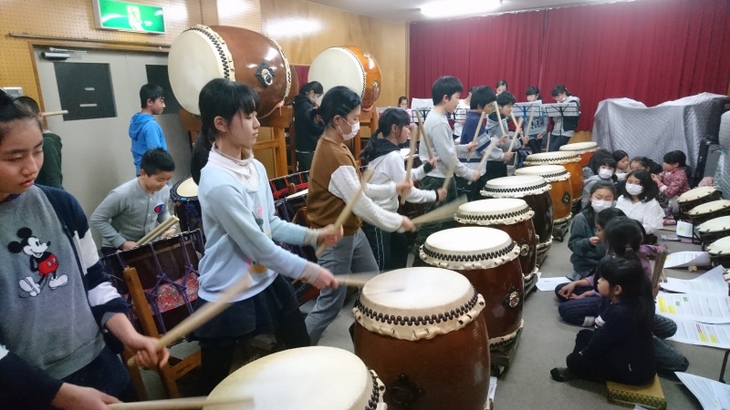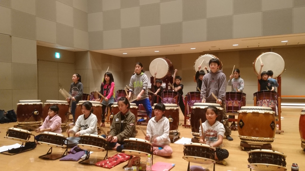 | 2017/02/05 演奏会に向けての特別練習会 本日の演奏会に向けての特別練習会は全日程をなんとか成果を上げて終了しました。 午前中は、新曲「KURAYOSHI」ばっかりしましたが、午後からは、4年生以下の新曲「鼓動」を中心に練習しました。「鼓動」はパートメンバーが大体決まりました。みんな頑張りました。 「遥かなるふるさと」「打吹童子ばやし」「鼓魂」「オーライ!!」も練習しました。最後に、演奏会オープニングで演奏を予定している「KURAYOSHI」「MATSURI」を通して特別練習会を終了しました。子ども達☆お疲れ様でした。保護者の皆さんも太鼓の運搬ありがとうございました。子ども達も太鼓の片付けありがとう。 |