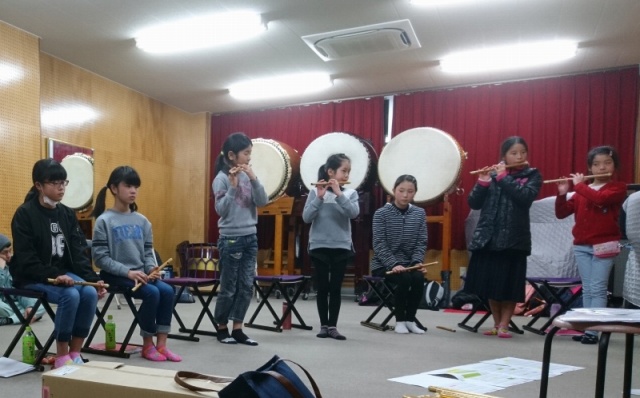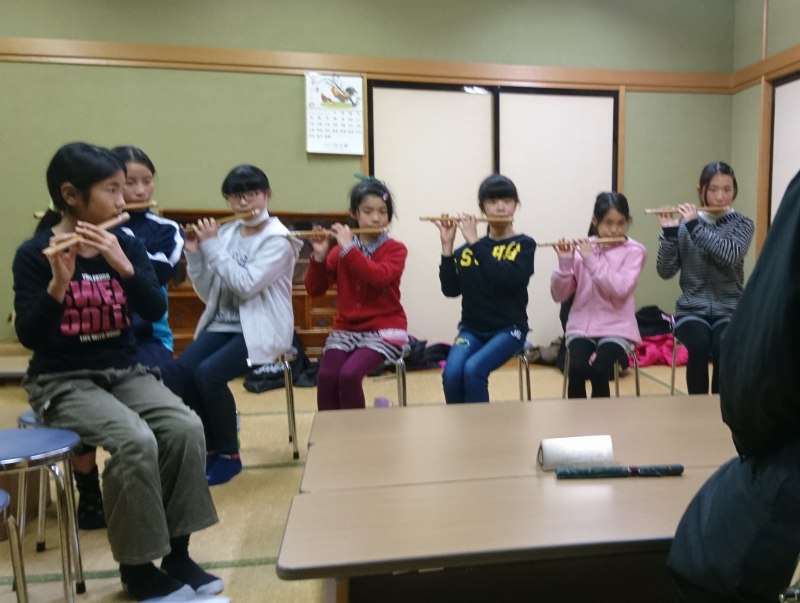 | 2017/02/07 しの笛隊定例練習会 しの笛隊練習会 2017年2月7日(火) 新曲の「鼓動」と「KURAYOSHI」を練習しました。ずいぶん上手になりましたよ。 しの笛は、アンサンブルになるとピッチを合わせるの難しいですが、打吹童子ばやしの子ども達は素晴らしく上達していますよ。最初は、どうなることかと思っていました。できない時は(演奏会に間に合わない時は)シンセサイザーでやるかなと考えていましたが、もう難関のトンネルは抜け出てしまいました。しの笛はド〜シまでの音階を2オクターブ上げていきます。音階も結構動くので大変なんですけど・・・子ども達はやってしまいました。 |