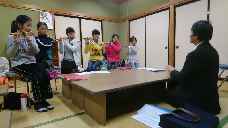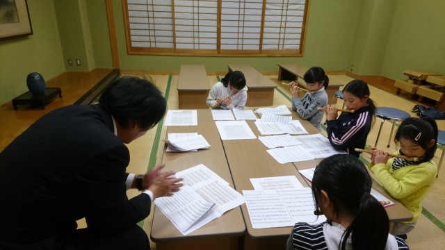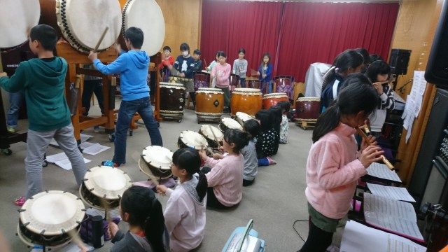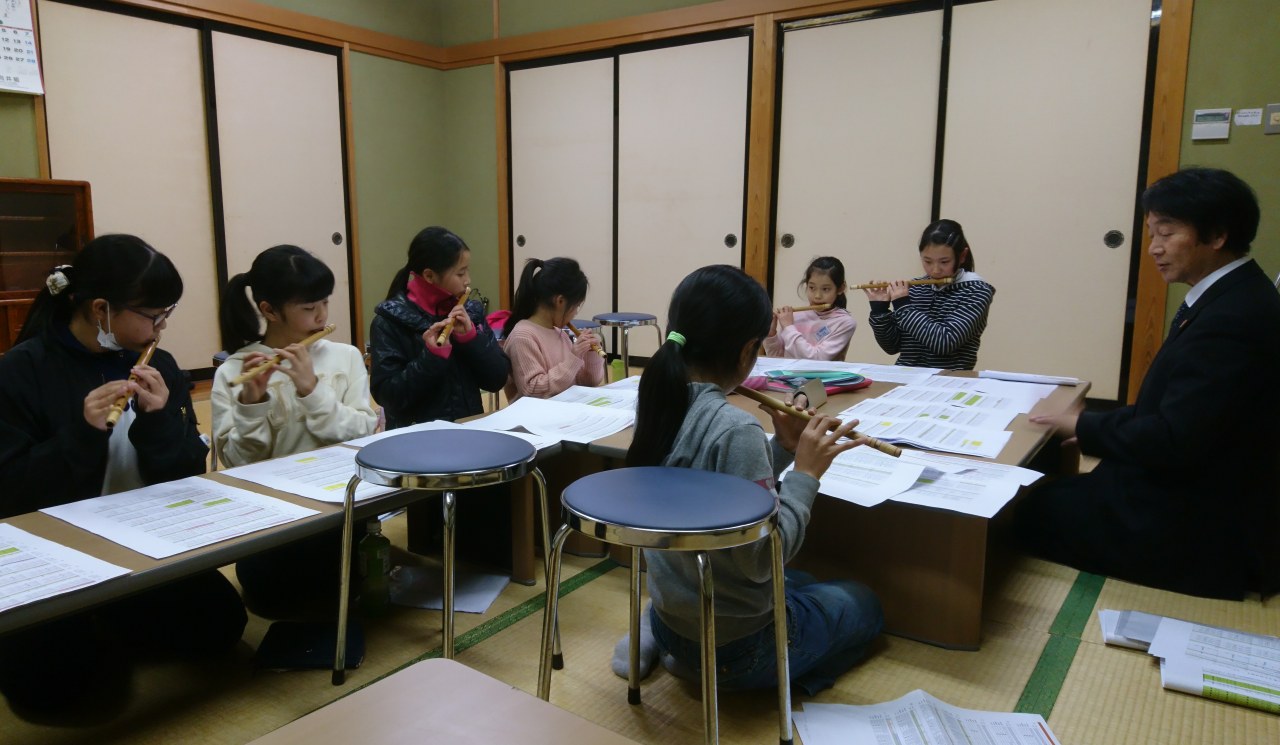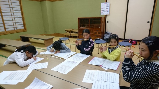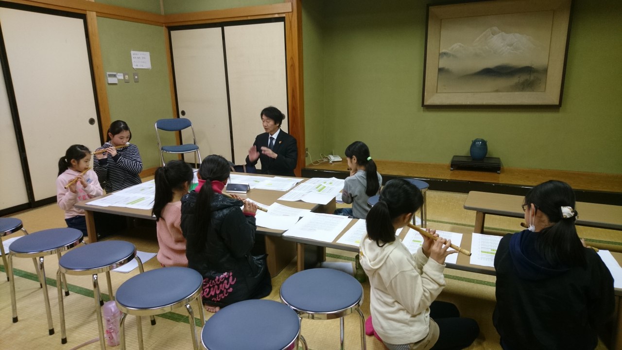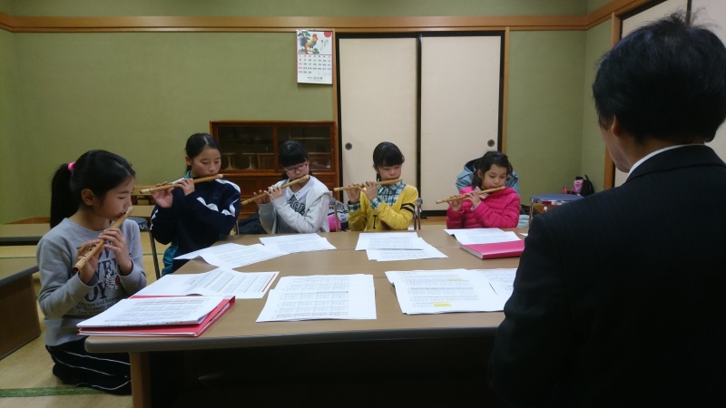 | 2016/12/20 しの笛隊 4年生以上特別練習会 しの笛隊 4・5・6年生は、新曲「KURAYOSHI」の特別練習会をしました。 しの笛隊の定例練習会は、先週で年内の練習を終了しましたが、新曲「KURAYOSHI」は、しの笛の難易度が高いので、4・5・6年生は特別練習会をしました。曲の最後まで流れとフレーズが理解できたようです。なんとなくトンネルの先が見えたような気がします。 |