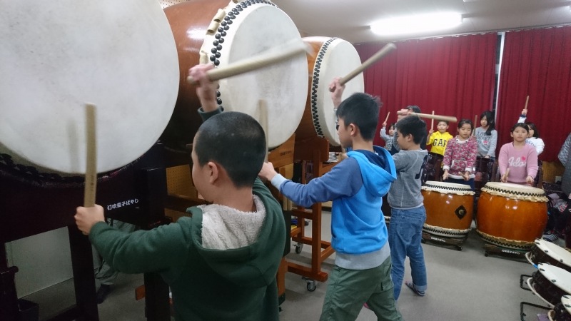 | 2017/01/11 新年の練習会がスタートしました。 2017年1月11日(水) 新年の打吹童子ばやし定例練習会がスタートしました。 子ども達は元気にやってきました。25期演奏会に向けて、新曲「KURAYOSHI〜未来へ〜」を早速練習しました。どんどこ楽譜を配って、プロローグから最終章まで、基本リズムを練習しました。なかなかのみ込みが早いですね。子ども達の気合を感じます。 最後に、14日(土)ハワイアロハホールで開催される「とっとり元気フェス2017」のステージイベントのオープニングで演奏する「遥かなるふるさと」「打吹童子ばやし」「MATSURI」を演奏しました。皆さん是非見に来てくださいね。 CDと25期プログラムを配布しました。定例練習会は限られた時間なので、今日の復習とCDを聞いてどんどこ楽譜を読み込んでおいてくださいね。目標をもって練習していきましょうね。 打吹童子ばやしの熱烈なファンの女性から子ども達にチョコのプレゼントをいただきました。ありがとうございま〜す。早速みんなで分けました。 |