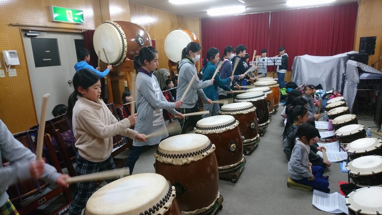 | 2017/01/28 演奏会に向けて特別練習会 打吹童子ばやし第25期演奏会に向けての特別練習会を倉吉未来中心リハーサル室でしました。2017年1月28日(土) 新曲の「KURAYOSHI」と「鼓動」の2曲を練習しました。 なんとかトンネルの先が見えた!ってところです。まだまだ完成度を上げるのは先になります。水曜日の定例練習会では、「MATSURI」と「打吹童子ばやし」「新・八犬伝」を練習します。あと4回の特別練習で間に合うだろうか・・・。がんばれ!!子ども達!! 練習後に、「打吹童子ばやし第25期演奏会」に向けての日程と現状を保護者の皆さんに説明し、理解を求めました。なんとかいい形で倉吉未来中心大ホールでできることを思いっきり願います。 |