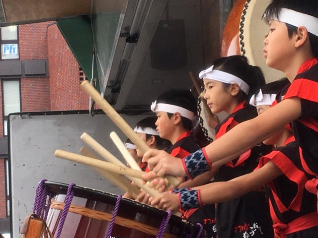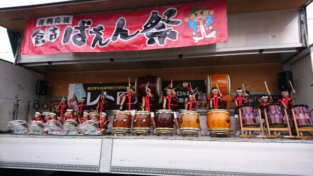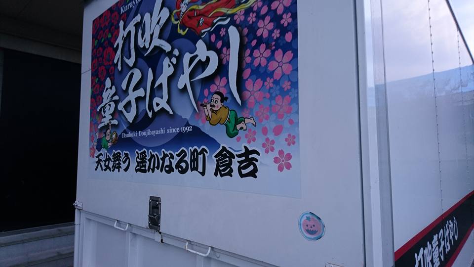 | 2016/11/27 第6回倉吉ばえん祭 パープルタウンでコンサート 2016年11月27日(日) 「第6回倉吉ばえん祭」&倉吉青年会議所主催「ニュー レトロ祭り」 打吹童子ばやしはオープニングで11時5分から11時25分まで演奏させていただきました。演奏曲は「MATSURI」、「遥かなるふるさと」、「打吹童子ばやし」 勢いのある素晴らしい演奏でした。副知事さんをはじめ、倉吉市長さん、中部地区の町長さん、舞立参議院議員さん、倉吉商工会議所の会頭さん・・・そうそうたる重鎮の皆様にも打吹童子ばやしの子ども達の元気の良い演奏を聴いていただきました。復興ののろしを打吹童子ばやしが太鼓で打ち上げました。・・・打吹童子ばやしが演奏すると不思議と雨が止むんですよね。 午後2時からはパープルタウンの中の中央広場で「打吹童子ばやしコンサート」をしました。50分のプログラムで、「MATSURI」、「遥かなるふるさと」、「打吹童子ばやし」、里見伝説「新・八犬伝」を演奏しました。アンコールでは、サプライズで☆ミニ八犬士による「新・八犬伝〜戦いの章〜」を演奏しました。 たくさんの方に聞いていただきました。演奏を観て感動したと花束をプレゼントされたメンバーがいました。うれしいねえ。子ども達は凄いなあ。25期は凄いなあ。 |