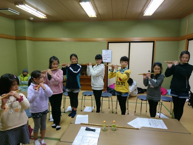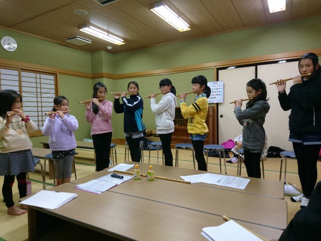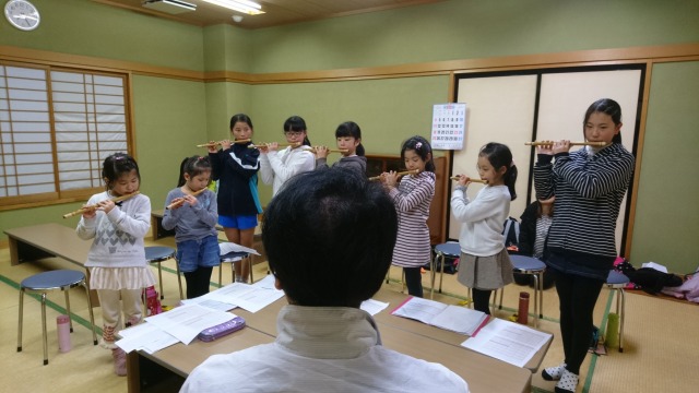 | 2016/11/29 しの笛隊定例練習会 2016年11月29日(火) しの笛隊定例練習会 新曲「KURAYOSHI」で基本練習をいっぱいしました。 「伏姫の章」、「打吹童子ばやし」、「MATSURI」、「長谷寺の絵馬伝説」、「飛天花火」・・・いっぱい吹きました。 わお!!一年生さんも高い音が出るようになりましたよ(^^)v 凄いぞ!! |