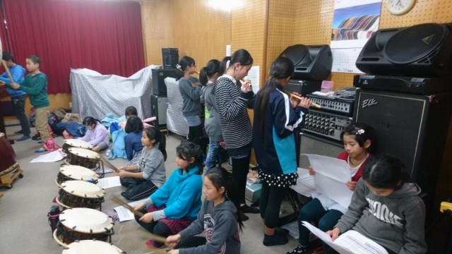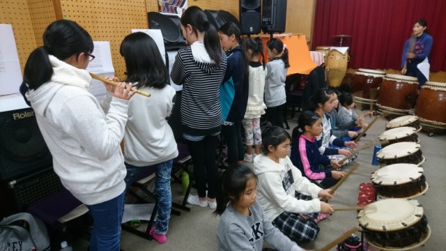 | 2016/12/14 定例練習会 定例練習会 2016年12月14日(水) 今日は、新曲「KURAYOSHI 〜未来へ〜」夜明けの章を繰り返し練習しました。もう汗だくです。しの笛隊はメロディーがないので大変です。がんばれ!!太鼓隊は、みんながリズムをマスターしてきましたよ。 |