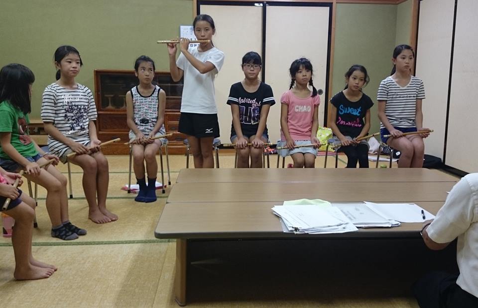 | 2016/9/27 しの笛隊定例練習会 しの笛隊定例練習会 2016年9月27日(火) しの笛メンバーが増えました。6年生さん指導をよろしくお願いします。最初は、打吹童子ばやしのエンディングを練習しました。10月1日(土)の「とりアートとっとり祭」では、新・八犬伝を演奏します。「遥かなるふるさと」は6年生が吹きます。つづいて、新・八犬伝を演奏します。5年生のまおさんが伏姫デビューします。みんなで練習をしました。 最後は、MATSURIを演奏して終わりました。 |