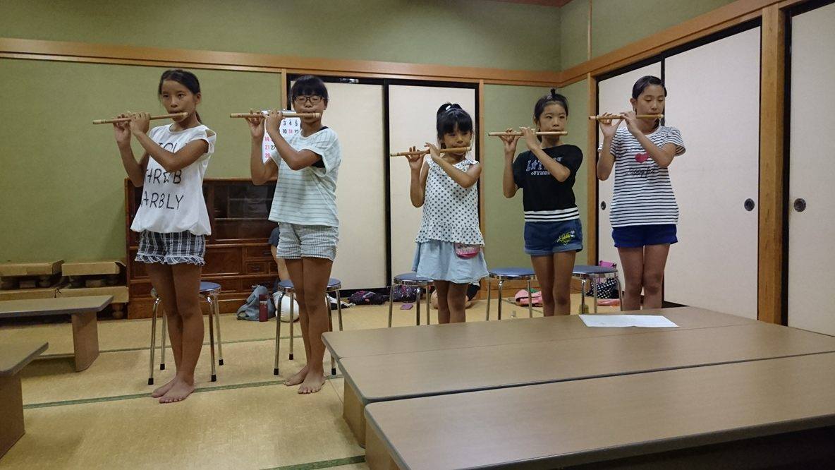 | 2016/08/09 しの笛定例練習会は子ども達で自主練 仕事の携帯に電話がかかってきました。「今日はしの笛の練習会では?」すっかり今日は休みにしてたつもりでしたが・・・ごめんなさい。休みを先週と勘違いしてましたか・・・。保護者さんからのメールで報告を受けました。全員参加です!!子ども達は、しの笛リーダーの進行で練習をしてくれました。わあ!!ごめんなさい。ありがとう。 |