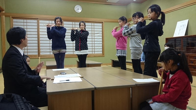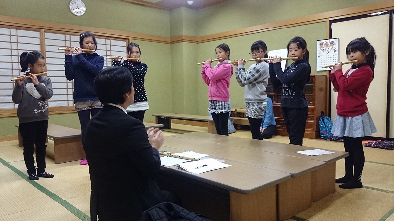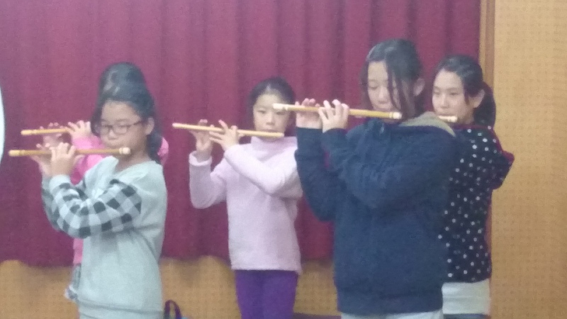 | 2015/12/01 しの笛隊練習会 新人さんが初参加です しの笛の練習会に新人さん2人が初参加です。将来の伏姫さんです。 わかなさん(6年生)は、わかなさん(2年生)を みくさん(5年生)は、ゆずはさん(3年生)をそれぞれマンツーマンでコーチしました。まずは、4拍。できたら8拍。ミーソーラーシー♫ 他のメンバーは「ALLRIGHT!」を最初から最後までを譜面なしで演奏できるように練習をしました。 一人ずつ「伏せ姫のテーマ」「戦いのテーマ」を練習しました。 最後にレギュラーの模範演奏を聴いてもらいました。 |