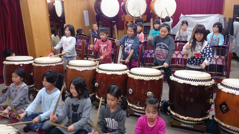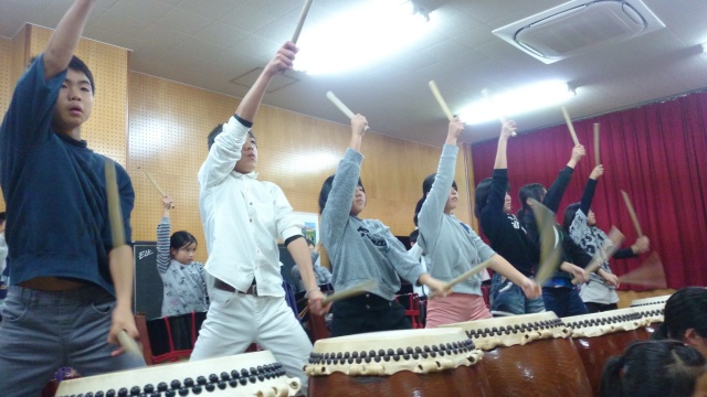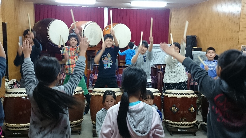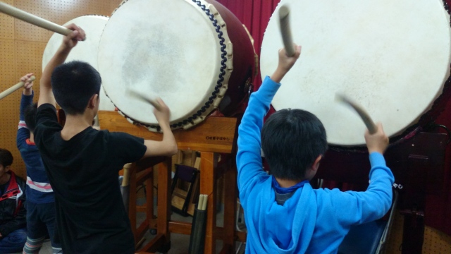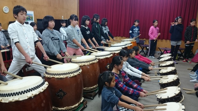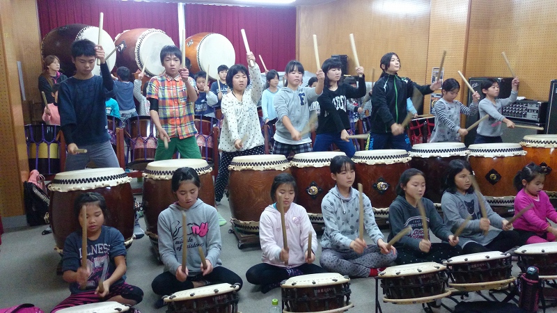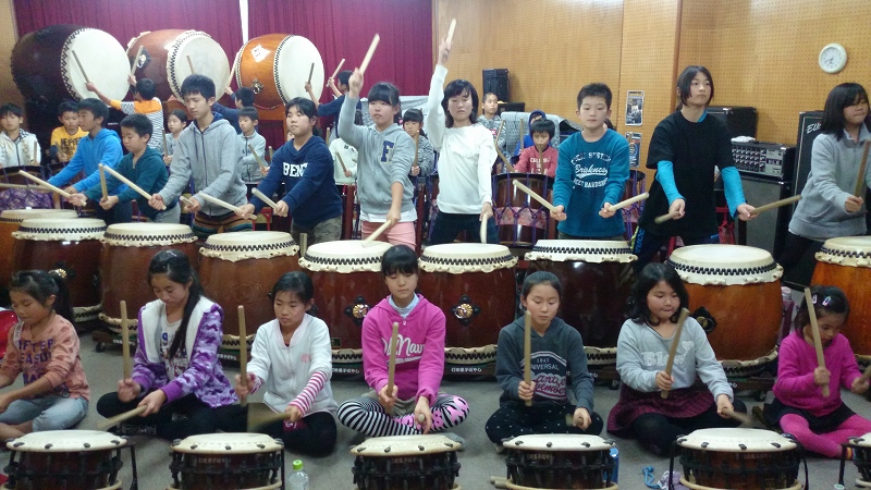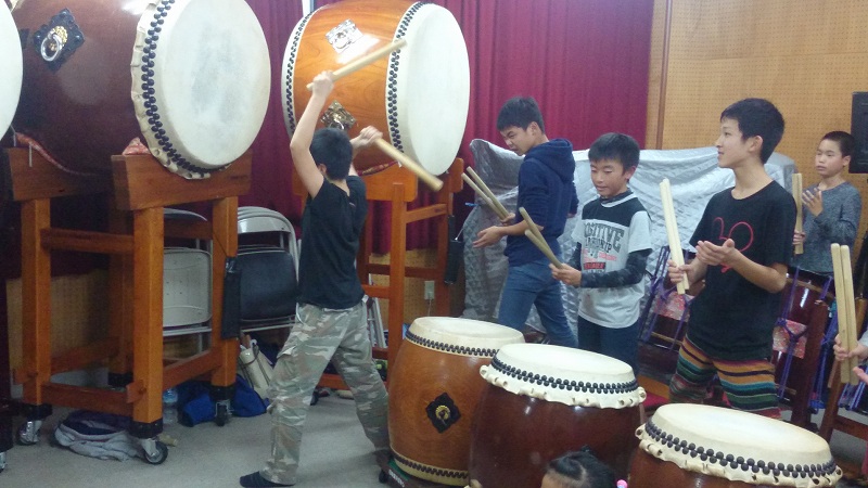| 2015/11/11 定例練習会 定例練習会 2015年11月11日(水) 国文祭での子ども達の成長に感動。2泊3日の遠征の中でたくさんの出会いや感謝を考える機会がたくさんありました。 太鼓をトラックから降ろして運ぶのも一生懸命率先して頑張っていました。太鼓の練習は力強く声も元気いっぱいでした。サッカーの大会で遠征に参加しなかったケンちゃんも帰ってきました。ライバル競争が始まりました。2つのポジションを4人で競うことになります。 3月12日の演奏会に向けて、12月、1月、2月 この3か月を頑張った人が・・・勝者です。 1、2、3年生中心の「童子夢太鼓」の練習も始めていきます。レギュラーは「オーライ!」の練習を始めます。 |