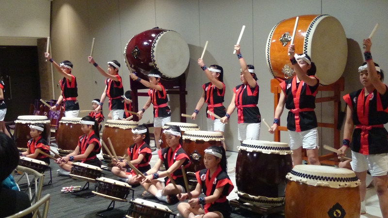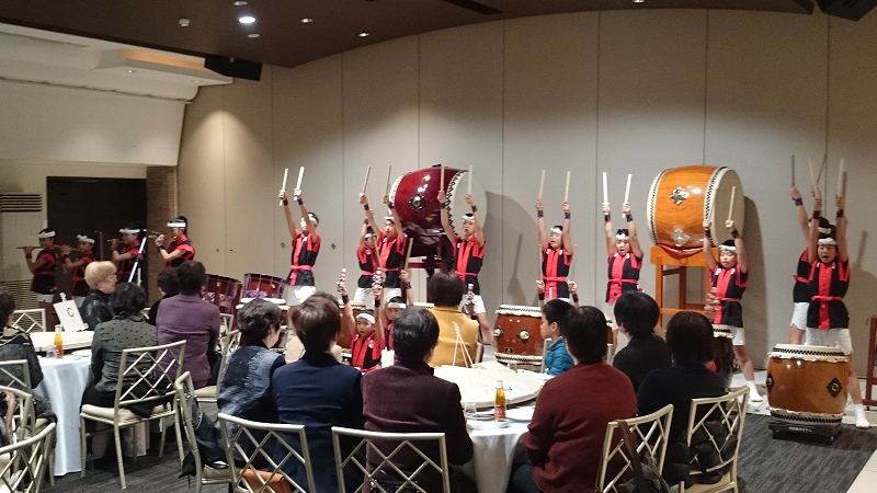 | 2015/12/06 「裏千家カルチャー山本社中納会」で演奏 倉吉シティホテル 2015年12月6日(日)夕方5時30分より 倉吉シティホテル 「裏千家カルチャー山本社中納会」で今年最後の演奏をしました。 演奏曲は「鼓魂組曲2015」(国民文化祭バージョン) アンコールで「MATSURI」 とっても素敵な演奏をしてくれました。 6年生けんしんくんが久々の演奏です。6年生にとってはあと3か月少々。年が明けると3月12日「打吹童子ばやし第24期演奏会」が卒業の演奏になります。・・・・思い出が多すぎて・・・少々さびしい・・・。 |