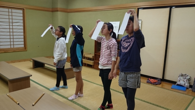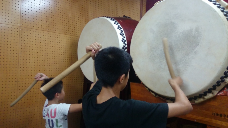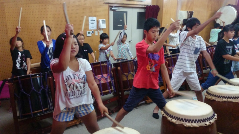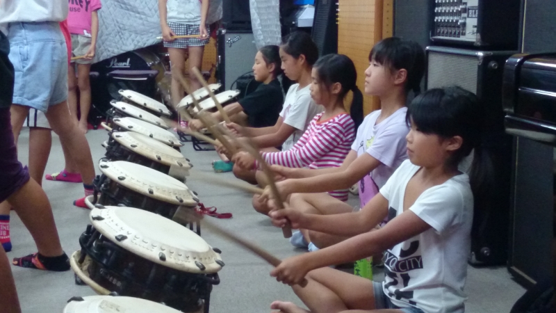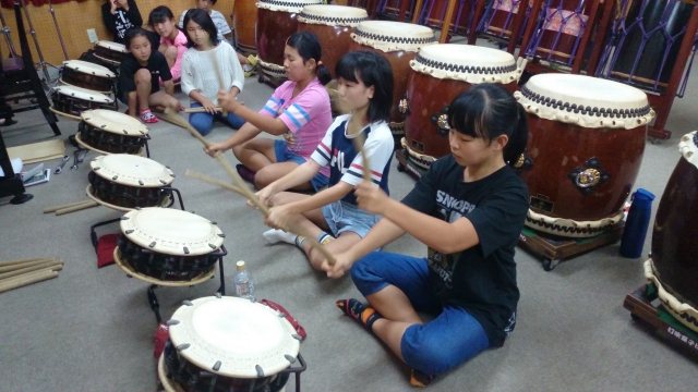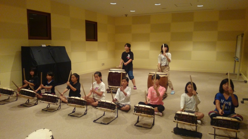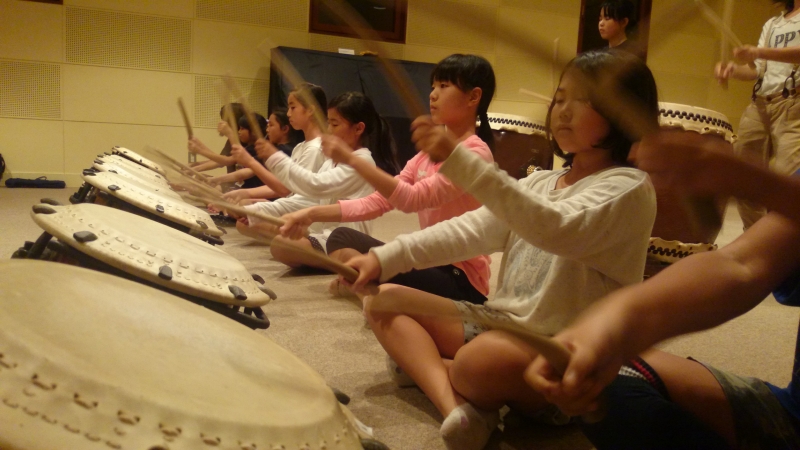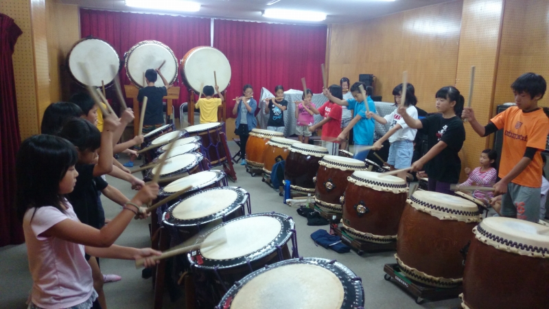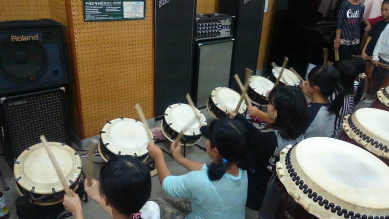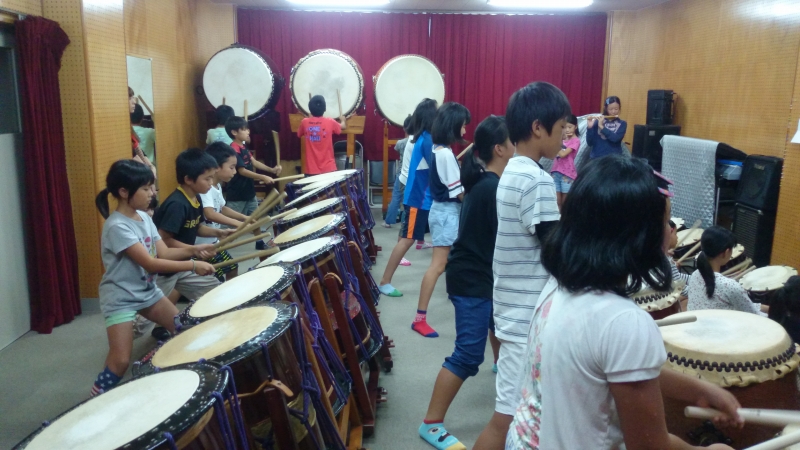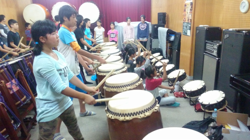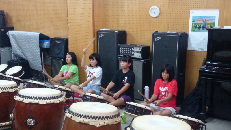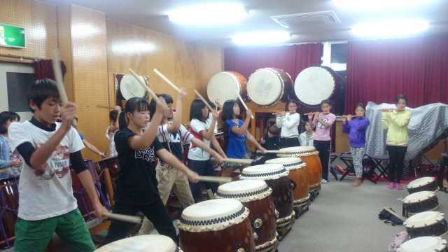 | 2015/10/03 県外遠征メンバー特別練習会 2015年10月3日(土)午後2時から6時 11月の県外遠征メンバーによる特別練習会をしました。たっぷり時間をかけて、ぼちぼち休憩もとりながら練習をしました。 まずは、基本打ちを中心に、自己表現アドリブ演奏をひとりひとりが順々に30分やりました。なかなかかっこいいソロ演奏もとびだして、思わず喝采です。子ども達のノリに、私もビシバシとアドリブ演奏を打ち込みしたらバチが粉々に吹っ飛んでいきました。笑 言葉で言ってもなかなか理解できないので、動画をとって目で確認してもらいました。ビデオをとっているときの子ども達のフォームは、笑っちゃうくらい別人でした。(笑) 基本練習をたっぷりして、里見伝説「新・八犬伝」〜戦いの章〜の難関部分を繰り返し練習をしました。八犬士組、雷鳴組が宮太鼓・桶胴太鼓の列を入れ替わりながら10回以上練習をしました。 次に、「鼓魂」の難関部分をたっぷり練習をしました。 次に、「鼓魂組曲」国民文化祭バージョンを練習しました。 最後に、明日の「北栄町合併10周年記念商工わいわいまつり」での演奏メンバーで演奏しました。 「北栄町合併10周年記念商工わいわいまつり」 とき:10月4日(日)午前10時より ところ:鳥取県運転免許試験場跡地(北栄町由良宿) アトラクションは10時30分からです。 |