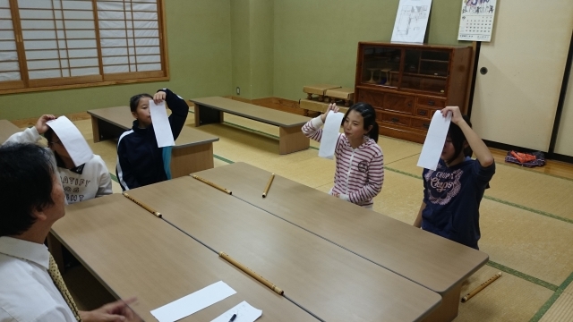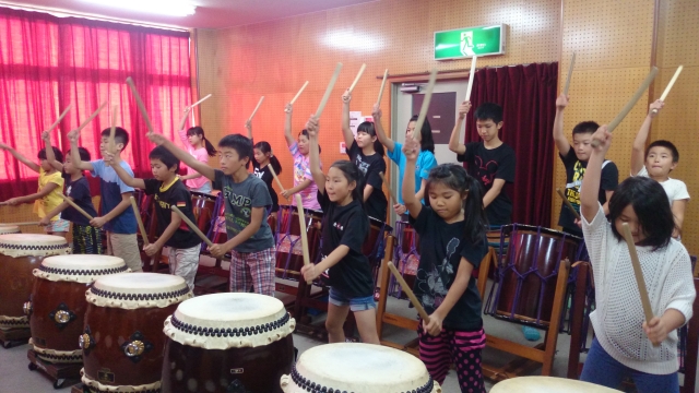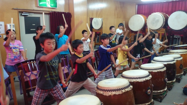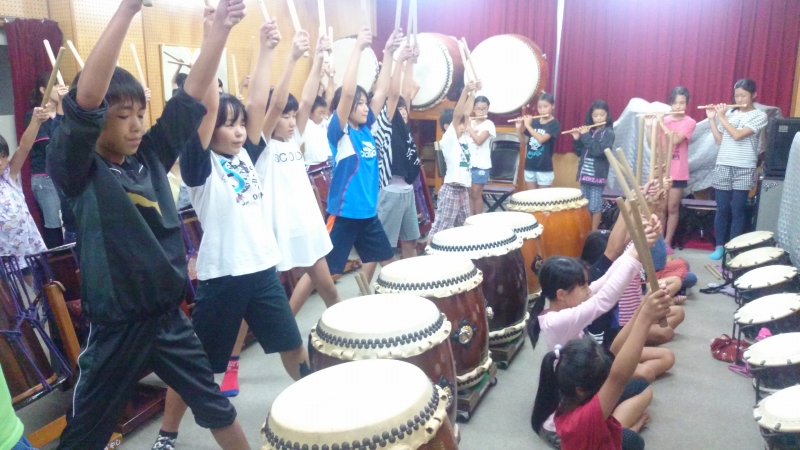 | 2015/09/23 定例練習会を特別練習会に変更して 水曜日の定例練習会は祭日のためお休みして、レギュラーの特別練習会を午後2時から6時までしました。 「新・八犬伝」の戦いの章を練習しました。桶胴太鼓隊(雷鳴組)の「新・八犬伝」難関の部分を個別、グループ指導をしながらみんなでマスターしました。あとはいっぱい打ち込んで体で覚えてしまうことですね。 香川県高松市で開催される中四国郷土芸能の大会に向けての構成を演奏してみました。まだまだこれからですが、子ども達の気持ちは確実に上に向かってきました。2・3・4年生の成長が楽しみです。 |