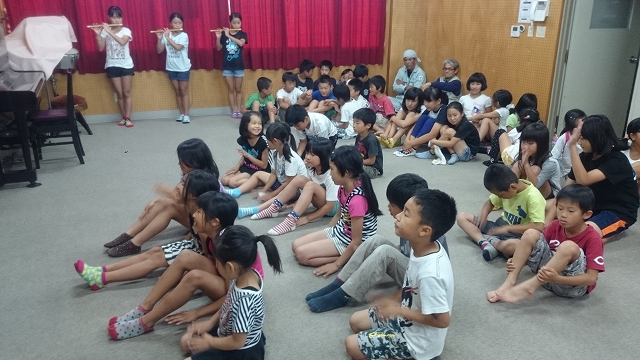 | 2015/06/17 定例練習会 定例練習会 2015年6月17日(水) 合宿後の定例練習会でした。みんなの熱気が随分と変わりました。 いきなり、レギュラーだけで「鼓魂組曲」の演奏をしてみました。共通して直したいところの基本練習をしました。気持ちを集中して、リズムを意識してバチでカンカンカンカン♪と拍子を打ってみました。なかなか一つの音として聞こえてきません・・・。集中集中!!締め太鼓グループ→宮太鼓グループ→桶胴太鼓グループ→やぐらグループ それぐらい意識して演奏しましょう。音符通りに演奏すると味気ないね。そこにはこぶしというものがあるんだなあ。呼吸というものがあるんだなあ。味のある表現は難しいね。基本練習を繰り返したっぷりしました。→打吹童子ばやし1章、3章のリズムを全員で練習をしました。 最後に学年ごとに打吹童子ばやし3章の桶胴太鼓ソロを演奏しました。最後の最後に本日の基本打ちをもう一度全員で打って練習を終了しました。 全国大会での舞台で演奏している姿を意識して演奏できる人が増えてきました。気持ちも演奏力も充実してきましたよ。どんどん気持ちのいい練習ができるようになってとっても嬉しいです。 |