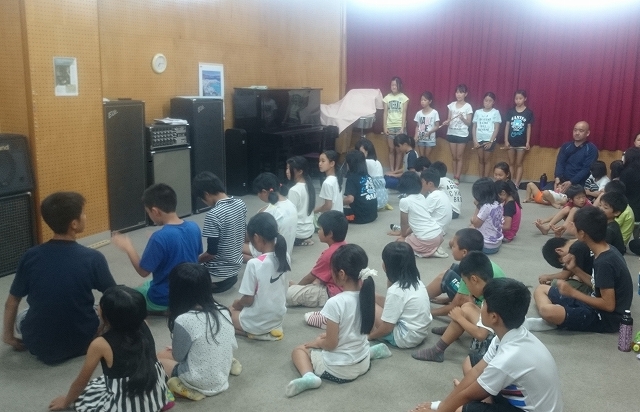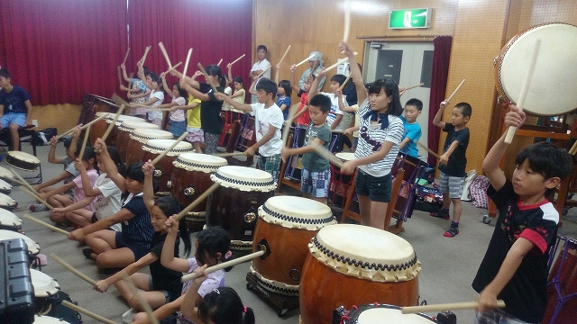 | 2015/06/14 2日間の合宿練習お疲れ様でした。 午後3時からの合宿のまとめの演奏は「鼓魂組曲」と「里見伝説 新・八犬伝」です。 「国民文化祭かごしま」のステージで演奏していると思って演奏しました。 昨日までとは全然別人の子ども達の演奏に拍手喝采です。涙をぬぐう保護者の皆さんにも泣かされました。凄いぞ子ども達!凄いぞ24期! 1泊2日の合宿が終わりました。お疲れ様でした。 さあ、第24期打吹童子ばやしが、やっとスタートラインに立ちました。ここからの子ども達の考え・工夫し・支え合い、目標にむかって心を一つに頑張る姿、心の成長にしっかりと意志高くエールを送りたいと思います。 今回の合宿に保護者の皆さんには本当に子ども達を支えていただきました。今回は、新コーチTOMOさんが子ども達のヤル気を支えてくれました。私の手が届かないところ、気づけていないところに凄くいい関わりをしてくれました。感謝感謝。 仕事場から業務用扇風機の差し入れもありがたかったです。アイスクリームにジュース、飴にチョコレート、はちみつ梅干し、塩タブレット・・・たくさんの差し入れもありがとうございました。 準備、片付けも保護者の皆さんが率先して動いてくださいました。すごく助かりました。もちろん子ども達も準備・片付けを頑張りました。これも成長ですね。私は太鼓を運ぶことが無くなりました。本当ありがたいです。 子どもの成長を共に喜べる保護者集団、子ども達の頑張っている姿に協力、手伝いではなく「一緒に楽しみたい!」といってくださる保護者の存在に涙が出ます。ありがとう。 |