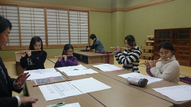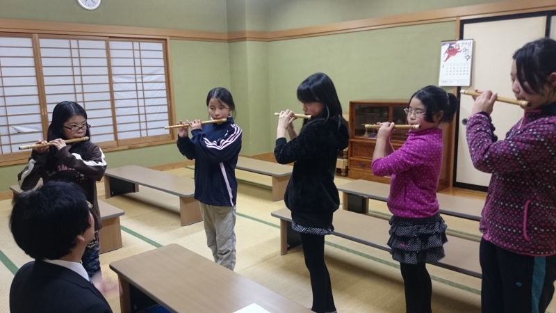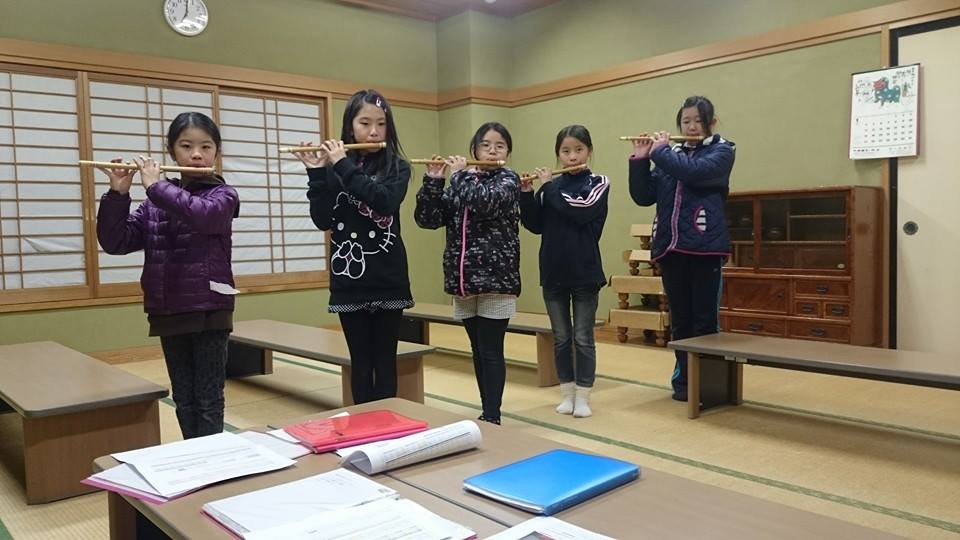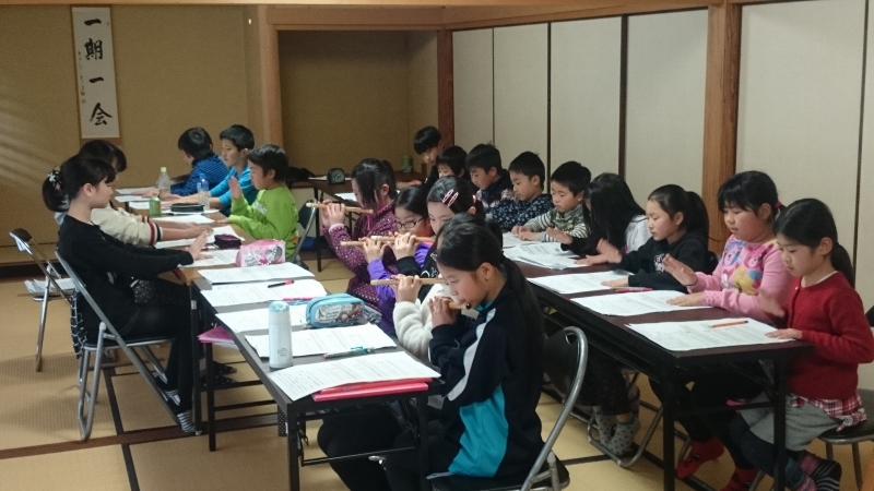 | 2015/01/27 しの笛隊練習会 しの笛隊練習会 2015年1月27日 打吹童子ばやしエンディング(しの笛パート)のメロディーと運指をDVDにして渡しました。早速練習してみました。ファ#は少々難しいね。慣れると簡単なフレーズでしたね。 23期演奏会で演奏する曲「オーライ!」の楽譜を配りました。最初から通して練習をしました。なかなかいい音が響いていました。気持ちいいです。みんなのヤル気がまっすぐです。 しの笛隊の袴が届きました。 |