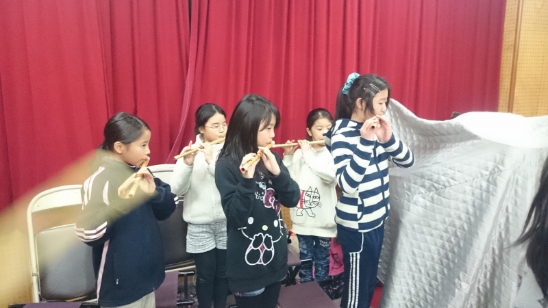 | 2015/02/10 しの笛隊練習会 しの笛隊練習会 2015年2月10日 第23期演奏会のプログラムに沿っての配役を子ども達と決めました。 5年生のわかちゃん、4年生のみくちゃん、いっちゃん、のんちゃん、3年生のまおちゃん、それぞれソロを吹きます。まおちゃんは、ソロは初です。 打吹童子ばやし3章のエンディングの練習をしました。みんな上手になりました。打吹童子ばやしの曲の中では唯一シャープ(#)が出てきます。今年の演奏会では、久々にエンディングに原曲のソロを入れます。 プログラム1番から、フィナーレの「日本のまつり」まで練習をしました。 しの笛隊5人のメンバーそれぞれがソロを担当します。 「遥かなるふるさと」ソロ・・・わかちゃん 「打吹童子ばやし」2章ソロ・・・わかちゃん 「打吹童子ばやし」3章ソロ・・・みくちゃん 「打吹童子ばやし」エンディングソロ・・・わかちゃん 里見伝説「新・八犬伝」伏姫の章ソロ・・・わかちゃん 「新・八犬伝」祈りの章ソロ・・・わかちゃん 「新・八犬伝」宴ソロ・・・いっちゃん 「長谷寺の絵馬伝説」ソロ・・・のんちゃん 「鼓魂組曲」プロローグソロ・・・わかちゃん 「鼓魂組曲」MATSURIソロ・・・みくちゃん 「鼓魂組曲」うたげソロ・・・まおちゃん |