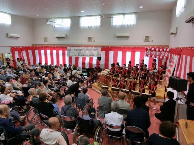 | 2014/09/15 特別養護老人ホーム倉吉スターロイヤルで演奏しました。 打吹童子ばやし天女音楽祭組(歴3年未満)が、特別養護老人ホーム倉吉スターロイヤルで演奏をしました。 このチームでは、初めての演奏です。 「童子夢太鼓」→「長谷寺の絵馬伝説」を演奏しました。 一生懸命演奏してくれました。 おじいちゃん、おばあちゃんに、とっても喜んでいただきました。 おじいちゃん、おばあちゃんの涙を見て、もらい泣きしてしまいました。 アンコールをいただいて、もう一度「童子夢太鼓」を演奏しました。 その後は、会場の皆さんと握手をしました。 |