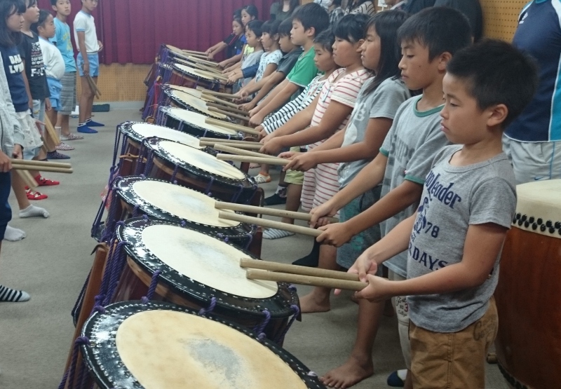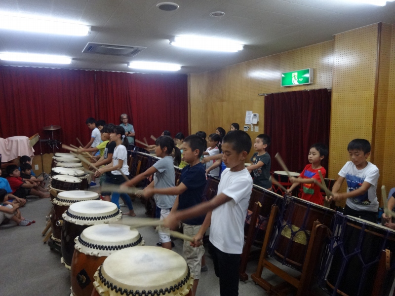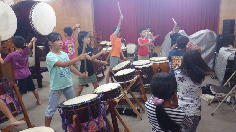 | 2014/09/10 定例練習会 2014年9月10日(水)定例練習会 まずは、基本打ちから。 天女音楽祭の演奏曲で出てくるリズムを全員で確認しました。 早速、倉吉天女音楽祭組で音楽祭演奏曲を通してみました。おおおお・・・、家から練習してきましたか。なかなかになってきました。 次は、レギュラー組による「里見伝説 新・八犬伝」を演奏しました。 今日は、館山遠征組八犬士勢揃いとならず・・・。チャンス!!次期八犬士が頑張りました。なかなかいい感じの演奏を聞かせてくれました。「仁」を3年生たいかくん、「礼」を4年生みこちゃん、「智」を3年生みずきちゃん、一番難しい「孝」を5年生ななちゃんが演奏しました。 音楽祭組と館山遠征組と交互に、演奏しました。 気持ちも技も次のステージに入ってきましたよ。 音楽祭組の選抜メンバーが、9月15日(敬老の日)に、特別養護老人ホーム倉吉スターロイヤルの「敬老祝賀会」で演奏します。初披露です。 10月12日(日)は「鳥取県青少年郷土芸能の祭典」で、里見伝説「新・八犬伝」を演奏します。 10月17日(金)は、音楽祭組が、全日本古希軟式野球大会の開会式で「童子夢太鼓」「長谷寺の絵馬伝説」を演奏します。 10月19日(日)は、倉吉天女音楽祭本番です。 また、レギュラー上級生は、千葉県館山市での「里見シンポジウム」で、里見伝説「新・八犬伝」を演奏します。 |