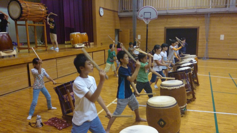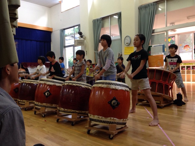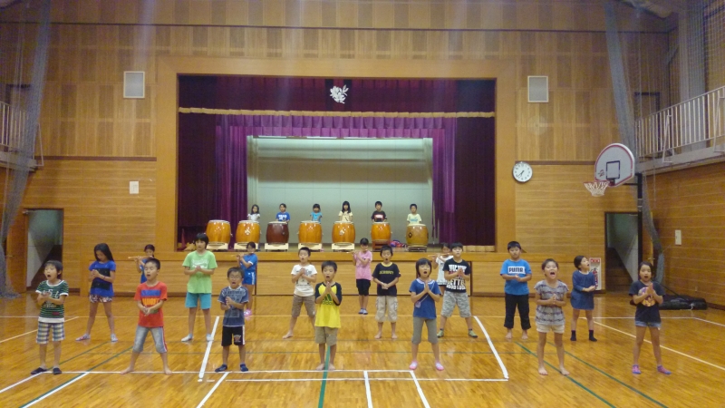 | 2014/09/28 夢童子組が「うたげ」の踊りの練習です 2014年9月28日(日)午後3時から5時10分 打吹童子ばやし夢童子組の10月12日「鳥取県青少年郷土芸能の祭典2014」での「里見伝説 新・八犬伝」の「宴の章」の踊りの練習会をしました。23期新団員にとっては、初めての踊りの特別練習です。 地域の運動会や行事などで参加者が3分の2だったので、結構内容のある練習ができました。 しの笛メンバーも参加してくれたので、踊りの練習がメインですが、太鼓の練習もしました。 なんとか全員が踊れるようになりました。うたげの太鼓は初めてなのに、かなりいいところまで覚えましたよ。・・・いい集中力です。 次は、火曜日の夕方に踊りの練習を企画しているので、休憩後、残り30分は、天女音楽祭での演奏曲の練習をしました。 今日は、主力の2年生が欠席だったので、チャンス到来☆桶胴太鼓のメンバーが宮太鼓で頑張りました。 さて、昨日のあの演奏をお願いします!主力がかけるとここというところで気持ちの弱さが演奏に出ますね。 昨日、レギュラー上級生に話したことを童子ばやし団歴3年未満の子ども達にもお話しました。「和太鼓は、個人競技だよ。まずは自分がどう頑張るか。そして、みんなのがんばるが一つになって初めて団体競技(組太鼓)としての素晴らしさになりますよ。それぞれが、そのパートをしっかりやりきる!さあやってみるよ。声を出そう!」 なかなかの集中力です。 長谷寺の絵馬伝説のお話と曲の説明をしました。一生懸命聴いてくれていました。 保護者の皆さんがお迎えに集まられたので、最後に1回、本番を意識して「童子夢太鼓」「長谷寺の絵馬伝説」を演奏しました。 「きをつけ!かまえ!」演奏が始まりました。 素晴らしい演奏ができました。自信のある顔つき、バチさばきになってきました。 合格点の演奏ですが、まだまだ、もっと凄い演奏になりますよ。がんばろうね。 |