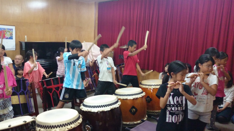 | 2014/10/01 定例練習会 2014年10月1日(水)定例練習会 夢童子組(天女音楽祭出演チーム)の演奏は、日々成長しています。自信のある顔つきになってきました。とっても楽しみです。 「新・八犬伝」の演奏は、社小学校メンバーが船上山で欠席でしたので、3年生の次期八犬士候補たいかくん(3年生)とみずきちゃん(3年生)が八犬士を演奏しました。 10月12日「鳥取県青少年郷土芸能の祭典2014」、10月19日「第13回倉吉天女音楽祭」の本番までもう少しです。しっかりと気持ちを入れて練習していきますよ。 本番では、思いっきり演奏を楽しもう。 |