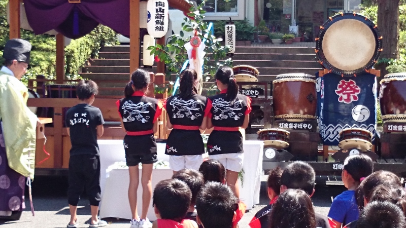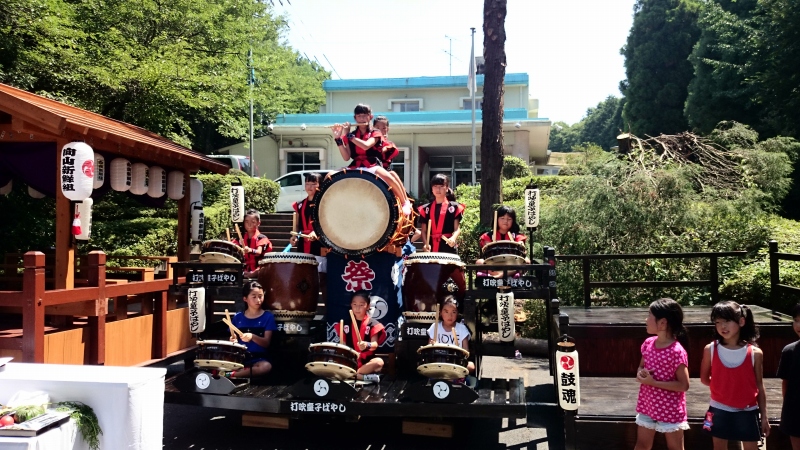 | 2014/07/12 北谷地区「ぬのこまつり」で23期レギュラーが演奏しました。 2014年7月12日(土)夕方5時40分演奏開始。 北谷地区の夏祭り「ぬのこまつり」で、打吹童子ばやし23期レギュラーメンバー23人がオープニングで演奏しました。 演奏曲は、@童子01 A長谷寺の絵馬伝説2章・3章 B打吹童子ばやし「天女と童子の物語」全章 北谷小学校メンバー5人が中心に、初めて北谷地区で演奏しました。 なんとか、いい演奏ができたようです。締め太鼓の若干のばらつきが気になったとの保護者からのコメントですが、23期新チームとして初舞台を踏みました。 会場のお客様からは、かなりの反響があったようです。来年もぜひ頼むと期待の声をいただいたようです。 とりあえずは、北谷メンバー家族は大満足だったようです。おめでとう。 これからの鍛錬の先にある太鼓打ちとしての心の成長を楽しみにしています。 |