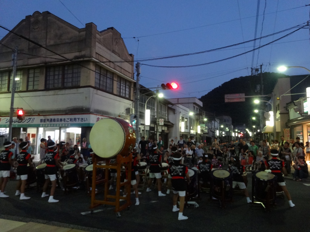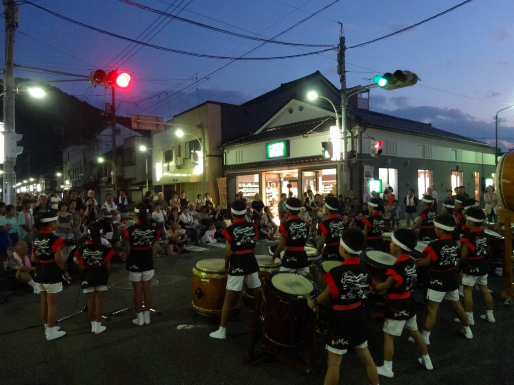 | 2014/07/26 打吹天女伝説祭り 2014年7月26日(土)夜7時30分より 「打吹天女伝説祭り」で23期レギュラーが演奏しました。「おおお!」と大人顔負けのバチさばきに歓声があがりました。 (ここは、明治町交差点です。来週もここで打吹まつりを盛り上げます。) 一つひとつ舞台を経験するたびに、確かな成長を感じます。素晴らしい演奏でした。 打吹童子ばやしのオリジナル曲「MATSURI」→「長谷寺の絵馬伝説」→「打吹童子ばやし〜天女と童子の物語〜」→アンコールで「うたげ」(新・八犬伝より)を演奏しました。 打吹童子ばやしのあとは、倉吉打吹太鼓のみなさんの演奏でした。やっぱり大人の太鼓の響きは違いますね。 来週の土曜日(8月2日)は、打吹まつり初日です。打吹童子ばやしの打吹童子ばやしたる盛り上げをしますよ。 「打吹童子ばやしお祭り隊」登場は午後4時15分から6時50分です。 |