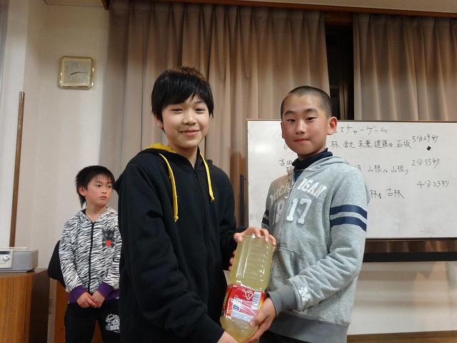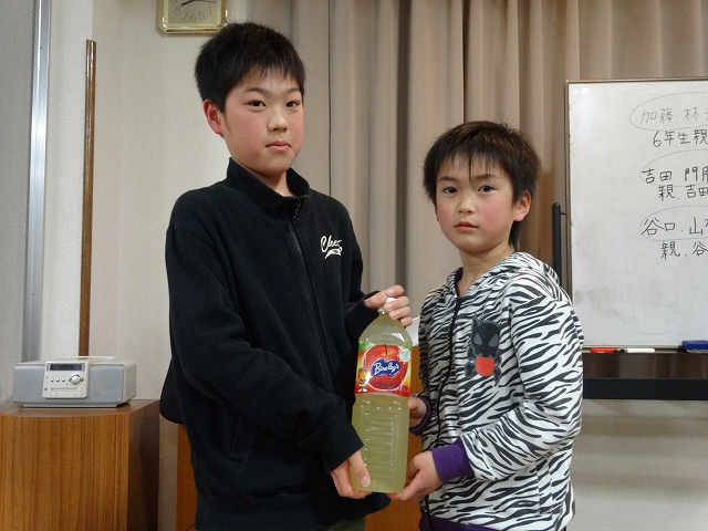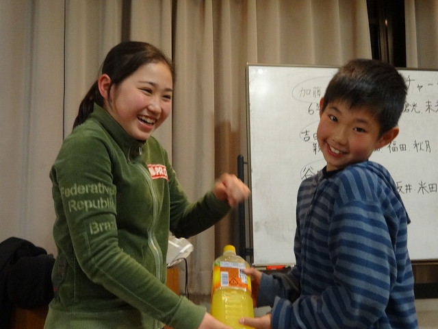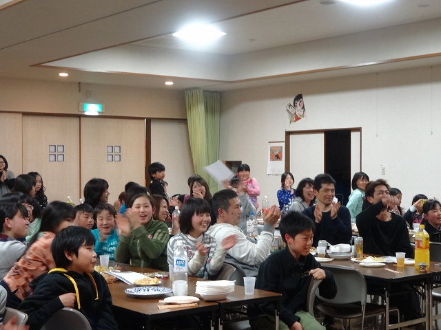 | 2014/04/06 22期の「6年生を送る会」をしました。 打吹童子ばやし第22期の「6年生を送る会」をしました。 6年生6人を送り出しました。打吹童子ばやしの付き合いが長い人で10年。今期を持って卒業は4家族です。いろんな思い出があります。ありがとう、そしてお疲れ様でした。 忘年会に引き続き、レギュラー家族の皆様、準備、設営、企画とありがとうございました。 まずは、お楽しみゲーム・・・6年生が2人ずつ分かれて後輩レギュラーとチームを組んで、ジェスチャーゲームのタイムトライアル つづいて、6年生一人一人に「もしかしてだけど×2」 ナイスなコメントで大受けでした。 アフロな西城秀樹とスクールメイツ?による 「YMCA」と「栄光の架け橋」の歌 ・・・・・・・・・・・・・・・・ しばし歓談の後 第23期のリーダー、副リーダーの発表がありました。6年生が23期を想い決めました。決めた理由もしっかり発表しました。・・・私は、この時まで何も聞かされていません。伝統で、子ども達が決めてバトンタッチです。 新6年生は、男子5人です。 打吹童子ばやし第23期リーダーは、福田裕基くん(上灘小学校) 打吹童子ばやし第23期副リーダーは、2人 倉光飛雄馬くん(上灘小学校)と坂井喬保くん(小鴨小学校) 22期リーダー吉田めいさんから福田ゆうきくんに リーダーのバトンタッチです。 やぐら男子 林らいやくんから倉光ひゅうまくんへ、加藤ひろあきくんから坂井たかほくんへ、副リーダーの伝達が行われました。 ・・・・・・・・・23期は頼んだよ!・・・・・・・・・・ またまた、しばし歓談の後 6年生の卒業の出し物もありました。本当に卒業式でしたね。それも家族共同作業でしたね。この6年間、たくさん家族の皆様に支えられ、打吹童子ばやしは成長してきました。 4月2日からの制作したの?・・・6年生家族による「恋するフォーチュンクーキー」のビデオには大歓声でした。・・・近日中にはYOUTUBEにアップします。 ・・・・・・・・・・・この6年生の粋な演出☆ 打吹童子ばやしの近年の盛り上がりを象徴していますね。 入団年は、2008年。2009年には、鳥取市で開催の「日本のまつり2009」で、若桜街道にて大はしゃぎしました。 あれから、打吹童子ばやしはお祭り隊として、地域の祭りを盛り上げる団になってきました。 子ども達の演奏もたくさんの方から高評価をいただくまでになりました。子ども達の成長も素晴らしかった。 本当に、結束力のあった6年生保護者。22期をしっかりリードしていただきました。 感謝!感謝!また感謝! 本当に、まだまだ一緒に打吹童子ばやしを楽しみたいです。さびしいぞ〜! 「国民文化祭あきた」でまた集まろう! 【卒業の合言葉】 中学校に行っても「がんばるぞ!」 卒業おめでとう☆ |