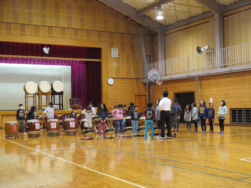| 2014/04/02 いよいよ26年度がスタートです。 今日は、平成26年度打吹童子ばやし第23期のスタートです。 写真を撮り忘れました。 入団予定の新1年生さんが、見学に来ていました。 ゆらちゃんとわかなちゃんは、一緒に基本練習をしてみました。なかなかやるじゃないか! 新2年生メンバーは刺激を受けて、頑張りました。 基本打ちから、リズム遊びをしたのち、「長谷寺の絵馬伝説」「童子01」「打吹童子ばやし」を演奏してみました。 つづいて、レギュラー以外の新3年生以下による「童子01」、新4年生以下のレギュラーによる「長谷寺の絵馬伝説」、5,6年生による「打吹童子ばやし」3章の宮太鼓1のソロ部分を演奏してみました。 向かって右をAチーム 、向かって左を Bチーム、A対Bでチーム戦をしました。 少人数での演奏ですから、演奏にごまかしがききません。 今後の練習目標が見えてきました。 第23期打吹童子ばやし結団式は、4月23日(水)午後6時からです。 練習会場は、4月16日(水)から、倉吉市文化活動センターになります。 4月5日(土)の夕方に第22期の6年生を送る会をします。6年生6人が卒業です。 第23期の新団員は、10人くらいになりそうです。 ますます賑やかくなります。 教える側も結構体力が入りますよ。