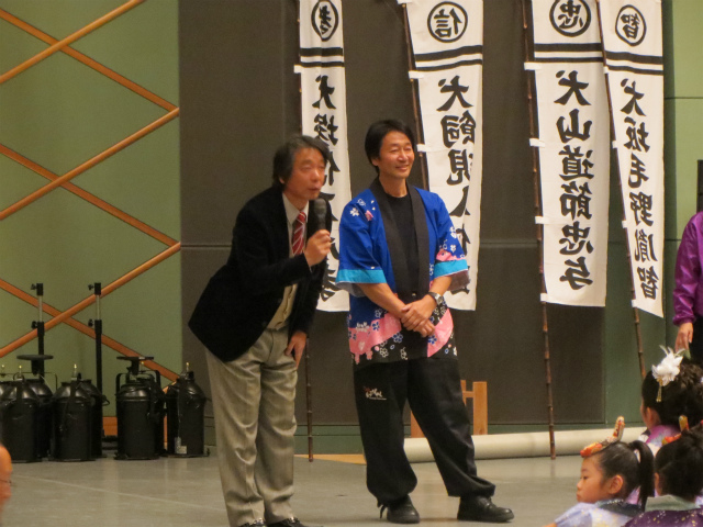 | 2013/11/20 定例練習会 17日は、みんなが頑張りましたね。 定例練習会 17日は、みんなが頑張りましたね。 「17日は、みんなが頑張りましたね。」 22期リーダー吉田めいさんは、会長に昇格です。 会長は、バレリーナとして「新・八犬伝」を頑張りました。打吹童子ばやしとバレリーナ八犬士を繋げる大役を果たしました。 みんなに改めて紹介し、頑張りに感謝の拍手を送りました。 今回リーダーとしてみんなをけん引した門脇ゆいさん。副リーダーとしてリーダーを支えた谷口まおさん、山根みゆさん。やぐらを頑張った加藤ひろあきくん。 6年生に一言ずつ17日の舞台の感想をコメントしてもらいました。 (やぐらマスターの林らいや君は体調不良で休みです。くたびれが出たかな・・・。) 早速、練習に入りました。しっかりと腕を振り上げ、どんどんどんどん♪ つづいて、締め太鼓と宮太鼓は地打ちをどんどこどんどこどんどこどんどこ♪桶胴太鼓とやぐらはどんどんどんどん♪ 次は、長谷寺のリズム。あいちゃん、みゆうちゃん(1年生)の打ち方が素晴らしいのでみんなの前で手本として打ってもらいました。「しっかりと打ち込む、身体でリズムを表現する」・・・いいぞ! みんなで意識して打ってみました。いいねえ!その調子。 長谷寺の2章3章を小間切れにして練習をしました。6年生が指導に回りました。 長谷寺の絵馬伝説の1章をみんなで練習をしました。 すぐにマスターしてしまいました。集中力がありますよ。 吉田めい会長に審判長になってもらって、並び真中から上手側はチーム谷口、下手側はチーム門脇 長谷寺の絵馬伝説の勝負をしました。 チームミーティング60秒後に、先攻後攻決めじゃんけん 聴く態度、応援する気持ち・・・50点 演奏力・・・100点 合計150点で勝負しました。 先攻の演奏は、チーム谷口 どちらも緊張感のある素晴らしい演奏ができました。 吉田会長のジャッジは、演奏力では、チーム谷口 でも聞く態度が少々マイナス点 総合点で勝利したのは、チーム門脇でした。 最後に、久しぶりにMATSURIを演奏して、練習を終了しました。 終わりに、子ども達、保護者のみなさんに向けて、先日の舞台での成長や気づきをお話しました。