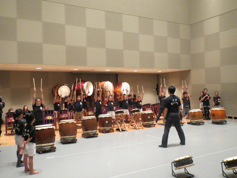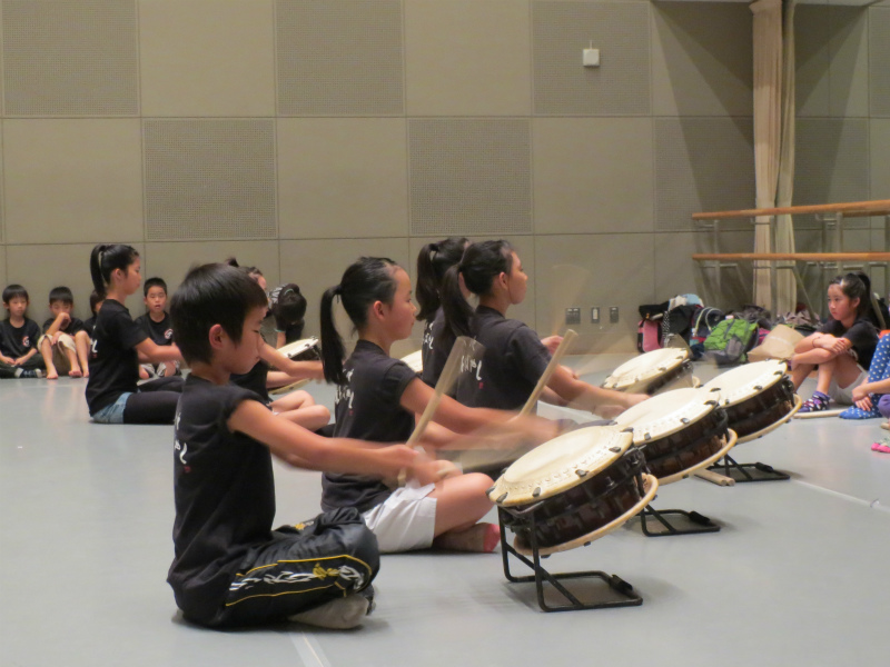 | 2013/11/07 定例練習会 11月10日に向けて 定例練習会 今日は、向山保育園の先生方にも宴の踊りを見学していただきました。 向山保育園出身の子ども達にとっては、懐かしい先生方の見学で気合が入りました。 まずはじめに、基本打ちで長谷寺のリズムを打ちました。しの笛隊も加わって演奏しました。 なかなかいいリズムが刻まれてきたので、2章、3章を全員で通してみました。また、上達しましたね。 続いて、見学の保育園の先生のために宴の踊りを2回しました。切れ味のある踊りができました。 11月10日の「鳥取県和太鼓連盟コンサート」の演奏の流れで、やぐらのソロから宴までを通してみました。 もう一度、今度は、鼓魂から宴までを通してみました。 最後に、11月17日の「倉吉子どもハッケン伝」での「新・八犬伝」戦いの章での八犬士の配役試合をしました。 山根りょう君(4年生) 対 倉光ひゅうま君 で「仁」の犬江親兵衛を競いました。 どっちもが甲乙決め難い演奏をしました。勝敗は保留です。 とりあえず、「新・八犬伝」バレエとのコラボ演奏バージョンのテンポでの演奏を通してみました。 明日、木曜日にLEGEN童の練習時間の前1時間を打吹童子ばやしの最終練習にしたので、宿題を明日に残して終了しました。 01の保護者のみなさんに、宴の鈴を子ども達の練習中に15セット作ってもらいました。あっという間に出来上がりました。また、一つのことで保護者同士が仲間になりました。 3・4・5・6年生の保護者の皆様には、宴の衣装制作の段取をしていただきました。ありがとうございます。出来上りが楽しみな衣装です。ありがとうございます。 |