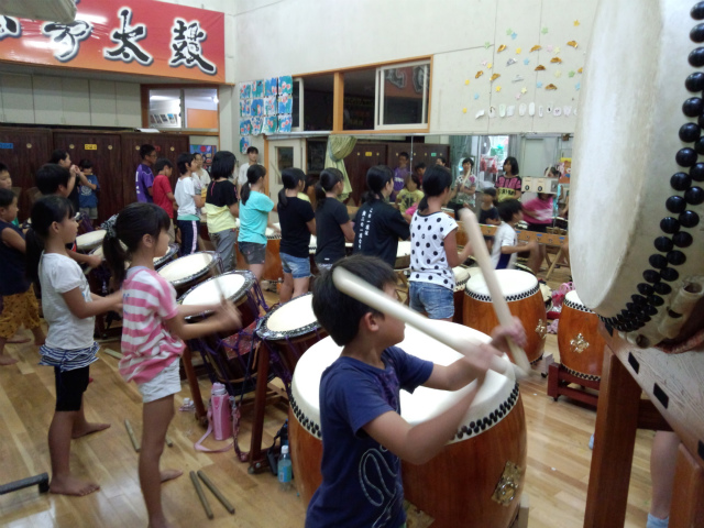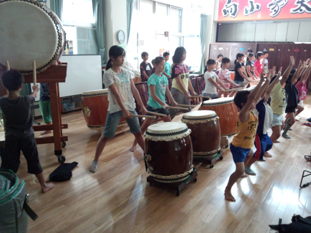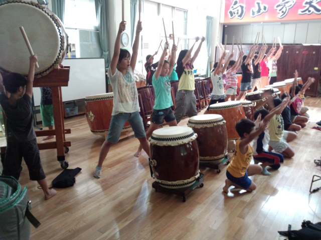| 2013/08/11 レギュラー特別練習会 (LEGEN童との合同練習会) 来週はお盆で練習が休みになるので、向山保育園にお願いして、日曜日の朝9時から夕方5時まで練習会をすることにしました。 今回は、卒業生(中学)の和太鼓LEGEN童との合同練習にしました。 どちらも17日と24日に出演の予定があるのです。 本番に向けての特別練習会は、「お互いが刺激を受けながらレベルアップを目指す。」ことを目的に開催しました。 演奏曲は、「打吹童子ばやし」「MATSURI」「MATSURI羽衣」「新・八犬伝」 レギュラーに挑戦中のこうきくん(2年生)、しおんくん(2年生)、なおやくん(3年生)にも練習参加してもらいました。 LEGEN童のメンバーも段々に、気持ちが入ってきました。 新米レギュラー達も先輩の打ち姿に大分刺激をもらったようです。 なにせ憧れの打吹童子ばやしの先輩ですから・・・。彼ら彼女らにあこがれて入団した人達ですから、気持ちも技もとっても参考になったようです。 8月24日の演奏曲と流れもできました。 9月1日の里見まつりの配役もできました。 5年生男組が今回練習に参加できなかったのが、とても気がかりです。 LEGEN童のメンバーに八犬士の代役をしてもらって、「新・八犬伝」を練習しました。 仁:吉田めいさん 義:谷口まおさん 礼:遠藤れいなさん 智:山根ななさん 忠:門脇ゆいさん 信:山根みゆさん 孝:坂井かんなさん(LEGEN童) 悌:吉良けいすけくん(LEGEN童) 坂井たかほくん(5年生)と大番たいかくん(2年生)が「新・八犬伝」のやぐら太鼓に挑戦です。まだまだ、これからですが頑張りましたよ。楽しみです。 |