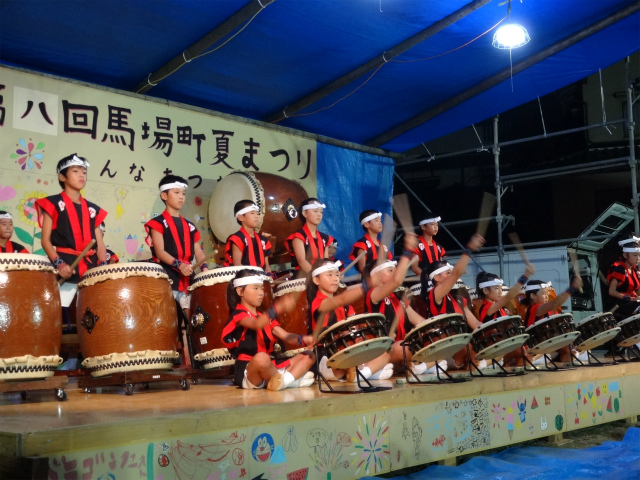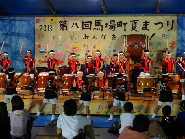 | 2013/08/17 馬場町夏祭りでパワフルな演奏を披露しました。 いいですねえ!いいですねえ♪ 観る人聴く人を圧倒するような演奏でした。(拍手)素晴らしい! 演奏はまだ少々荒いですが、勢いのある演奏に感動します。 打吹童子ばやし3章での宮太鼓の揃い打ちではゾクッとするような太鼓の響きがありました。 かっこいいというか素晴らしい! 22期もとってもいいチームになってきました。 夕方7時20分、馬場町夏祭りの大トリで登場です。 「MATSURI」(4分)→「打吹童子ばやし」(14分)→「うたげ」(3分) アンコールで「童子01」(3分)を演奏しました。 しの笛リーダーの山根みゆさん(6年生)が地元の祭りで太鼓デビューしました。(拍手)打吹童子ばやしで宮太鼓を演奏しました。 打吹童子ばやしでは、末兼わかなさん(4年生)が、しの笛を一人で吹ききりました。綺麗な澄んだ笛の音がとても心地良かったです。素晴らしい♪ 9月1日の里見まつりでは、伏姫デビューしますよ。 今後の練習課題もはっきりしてきました。 |