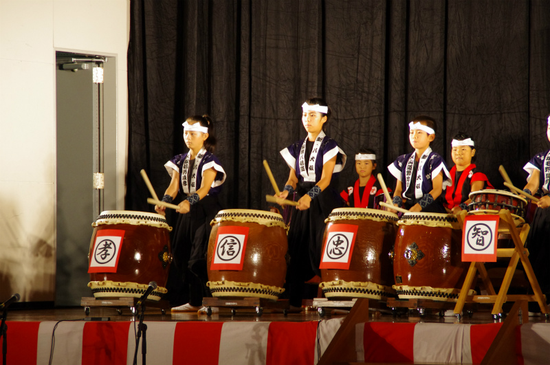 | 2013/09/01 里見まつりで素晴らしい演奏をしました。 里見まつりで勢いのある素晴らしい演奏をしました。 聞き惚れましたよ。いいねえ♪感動しました。 【伏姫】末兼わかな・・・4年生 【八犬士】 (仁)吉田めい・・・6年生 (義)谷口まお・・・6年生 (礼)遠藤れいな・・・4年生 (智)山根なな・・・4年生 (忠)福田ゆうき・・・5年生 (信)山根みゆ・・・6年生 (孝)門脇ゆい・・・6年生 (悌)林らいや・・・6年生 【雷鳴組】 (大太鼓) 倉光ひゅうま・・・5年生 坂井たかほ・・・5年生 (桶胴太鼓) 古林くうた・・・5年生 秋月はやて・・・5年生 山根りょう・・・4年生 秋月みこ・・・3年生 大番たいか・・・2年生 福田みずき・・・2年生 遠藤はやと・・・2年生 磯江あやか・・・2年生 【宴の踊り】 秋月みこ・・・3年生 大番たいか・・・2年生 磯江あやか・・・2年生 福田みずき・・・2年生 遠藤はやと・・・2年生 22期レギュラーが初めての「新・八犬伝」特別練習を向山保育園の遊戯室をお借りして、1時間30分たっぷりとしました。 案外打てているのに感心です。細かいチェックをして、最後に1回通して演奏しました。 昼食をとって、祭り会場の山守小学校へ移動です。 12時30分到着。早速リハーサルです。 まずまずの出来栄えです。照明はOHARAさん、音響はトミヤさん・・・いつもありがとうございます。 今日の「里見まつり」で、伏姫(しの笛)を4年生の末兼わかなさんがソロデビューです。 清らかな音色を会場に響かせました。 大した度胸です。頑張りましたね。 しの笛リーダーの山根みゆさんには、八犬士の信を打ってもらいました。太鼓で入団して、途中からずっとしの笛一本でやってきましたが、今回はサプライズです。 末兼わかなさんにもひとり立ちしてほしかったので、わかなさんには試練とサプライズです。 八犬士も雷鳴組もみんなが頑張りました。 踊りもとっても気持ちのいい踊りでした。 今日の舞台は、演奏も踊りも気持ちもとっても清々しい演奏でした。120点です。 |