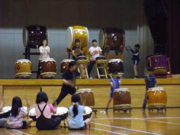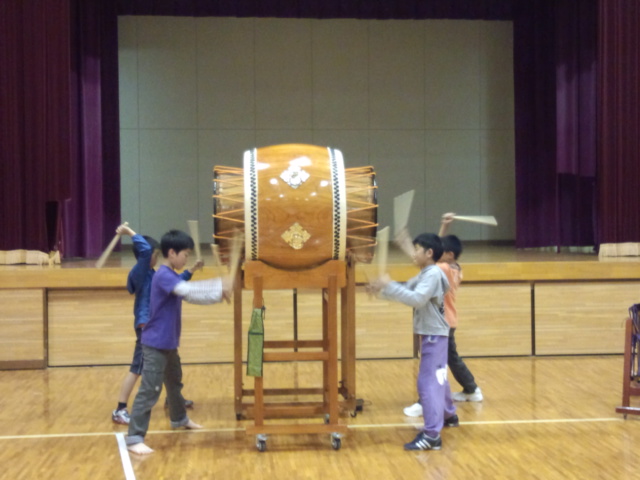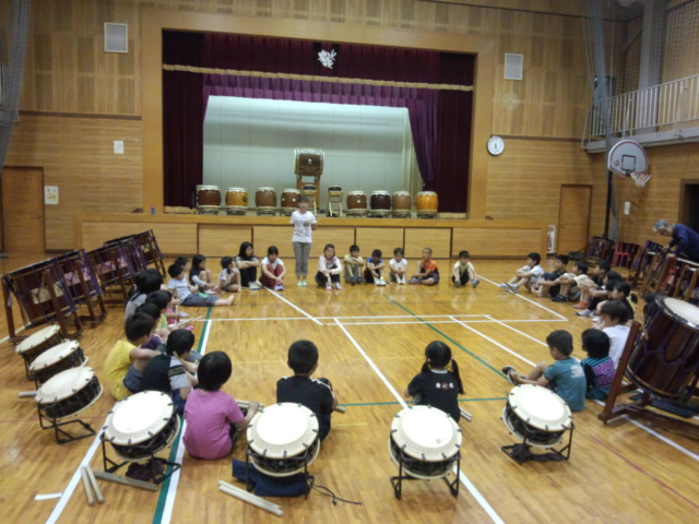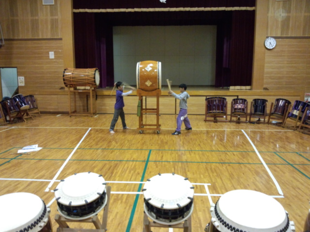 | 2013/05/15 定例練習会 元気のいい練習をしました。 今日も太鼓をフロアに下して、まずは、基本打ちをたっぷりしました。 汗が噴き出ます。水分補給の休憩もたくさんとりました。 途中、ステージ組のメンバーがMATSURIを演奏するのに合わせて、太鼓の周りをフロア組は走りました。 気分転換に大騒ぎをしました。 そのあと、全員でMATSURIの基本打ちをしました。笛のメンバーも合流して、全員でMATSURIを通して演奏をしてみました。 太鼓の音がずいぶんと弾んでいました。まさしく祭り気分。 休憩の後、2年目以上のメンバーで打吹童子ばやしを1章から3章まで演奏しました。 新団員のみんなは、バチをしまって演奏を聴きました。 山根りょうくん(4年生)が、5年生に見えるようなかっこいい演奏をしていました。 5年生以上のメンバーは思いっきり太鼓を打ち込んでいました。すごいすごい♪ いいチームになりそうです。 |