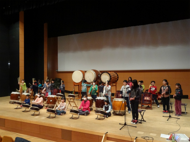 | 2013/01/27 レギュラー練習会をしました。(2月17日ステージ) 13:00から17:30まで、2月17日の「GRAPLE JAM」のステージの童子ばやしレギュラーによる練習会をしました。 動作、意識、曲の強弱、リズムのノリなど細かい部分の練習や確認をしました。 みんなが曲を体で覚えてきたので、音圧やキレが出てきました。 CDに合わせて演奏するのに、音圧で音飛びするようになりました。(次回からはMDにします。) 2月17日の 「鼓魂」は、チーフプロデューサーは坂井さん、サブプロデューサーは古林さん グレープルジャムとのコラボ曲は、チーフプロデューサーは吉良くん、サブは中山くんと田中くん 子ども達に指導をしてもらいます。 6年生による新・八犬伝を演奏してみました。なかなか良い演奏ができました。 3月の演奏会のどの場面でしようか悩んでしまいます。 最後に、本日の練習の成果を保護者の皆さんに聞いてもらいました。 次回は、腕の振り方、声を出すところ、キレのある小さな音、動作など演出を意識して練習します。